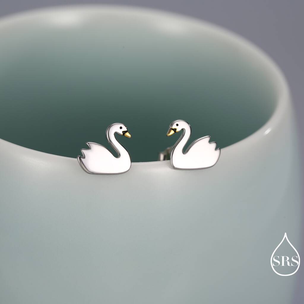 Cute Swan Stud Earrings In Sterling Silver