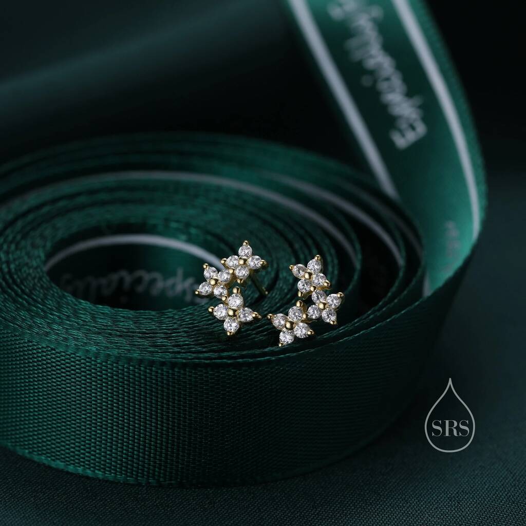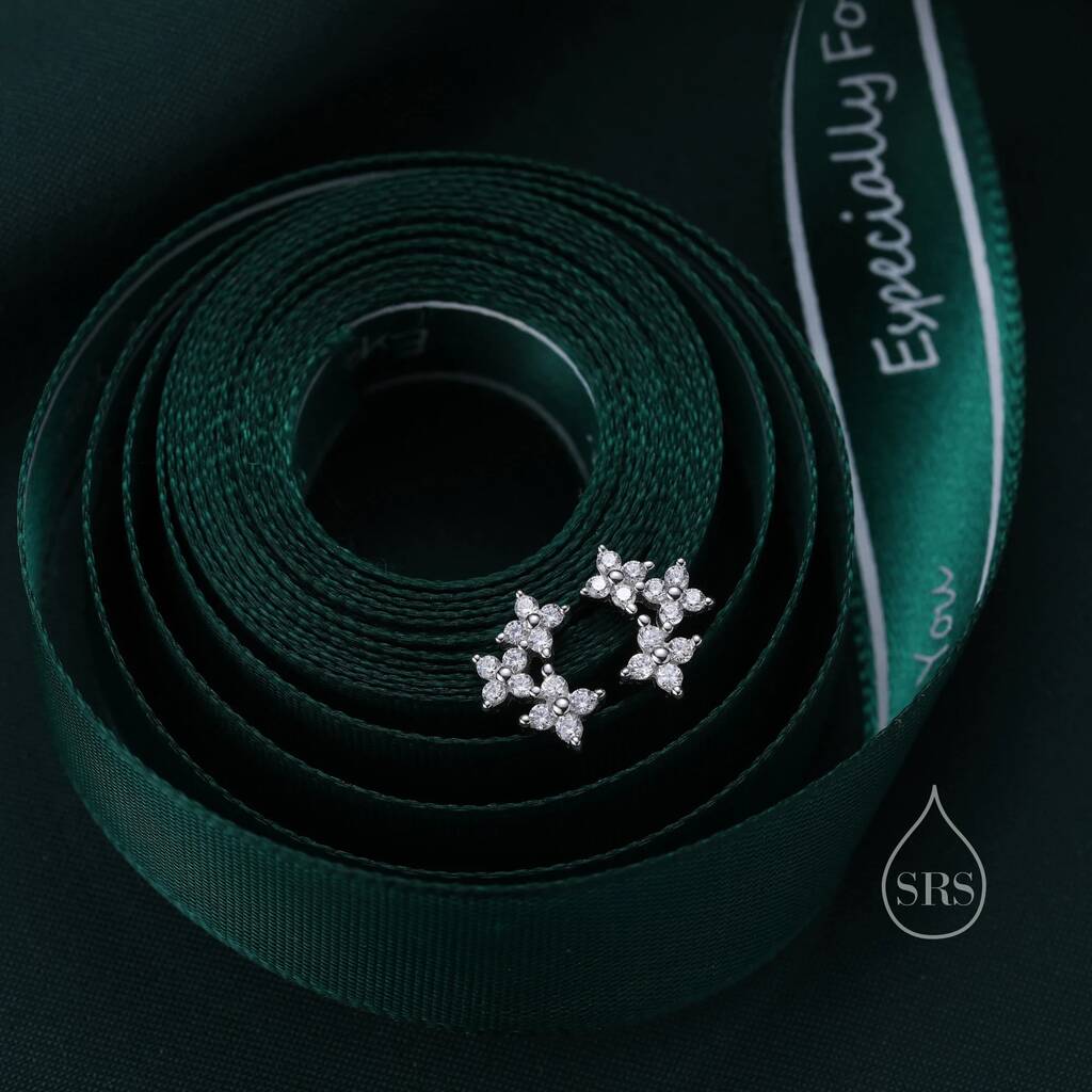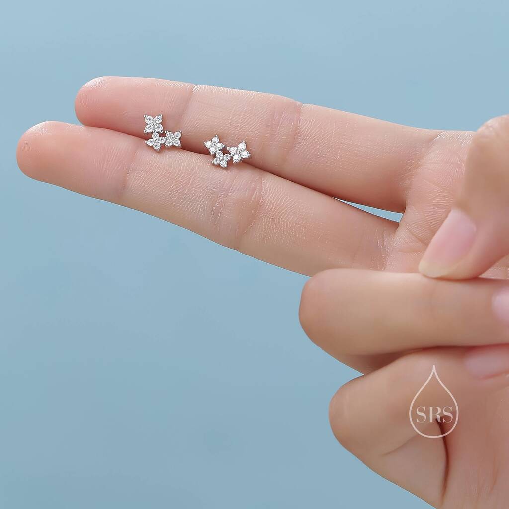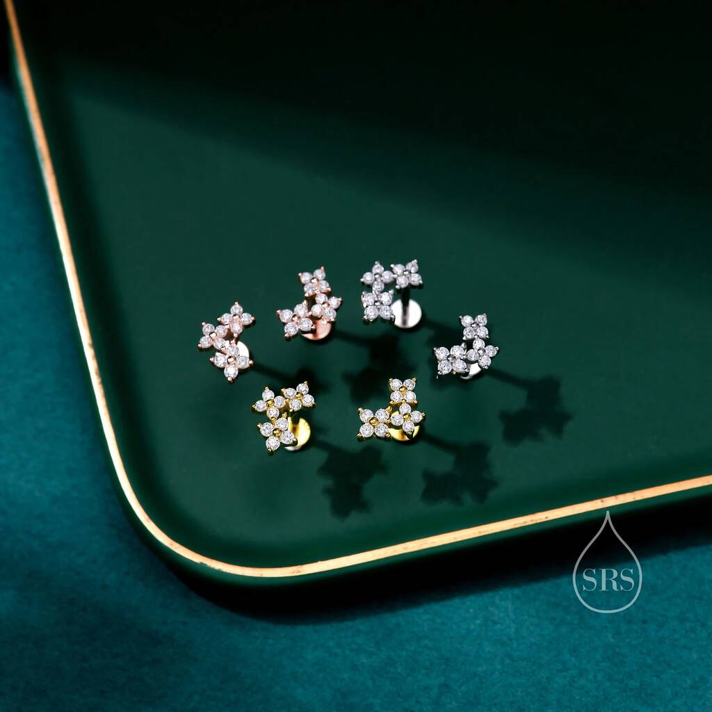 Cz Hydrangea Bouquet Internally Threaded Flat Back In Sterling Silver