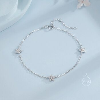 Illuminate your wrist with our CZ Star Motif Bracelet in Sterling Silver, perfect for adding a touch of celestial sparkle and elegance to any ensemble.