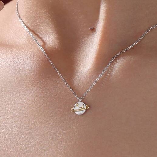 Dainty Planet Pendant Necklace In Sterling Silver