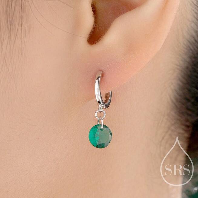 Dangle Emerald Green Cz Huggie Hoop Earrings In Sterling Silver