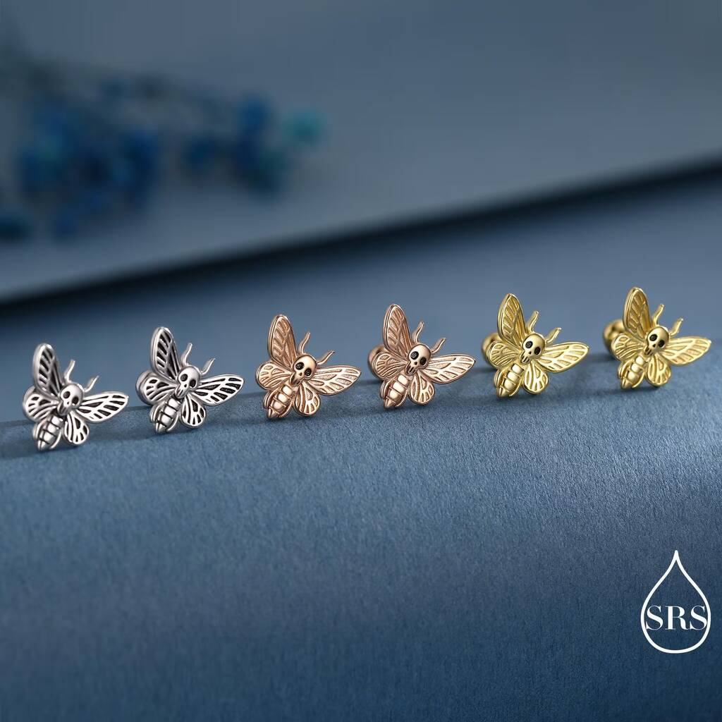 Death's Head Hawkmoth Moth Flat Back Earrings In Sterling Silver