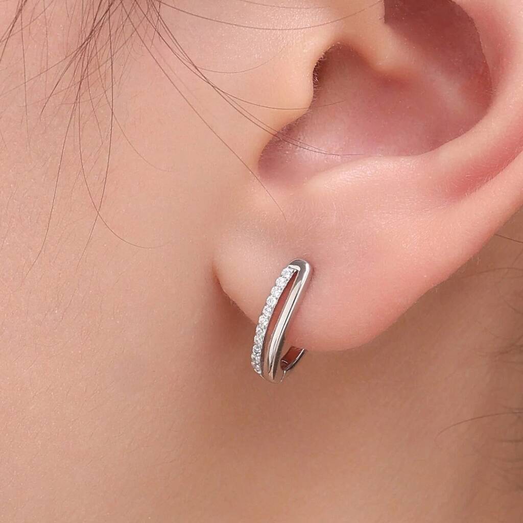 Double Huggie Hoop Cz Earrings In Sterling Silver