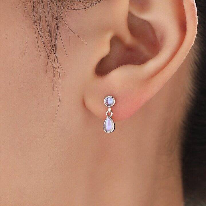 Double Moonstone Dangle Stud Earrings In Sterling Silver