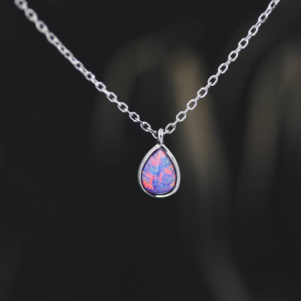 • Droplet Purple Opal Pendant Necklace In Sterling Silver, thumbnail 2 of 10