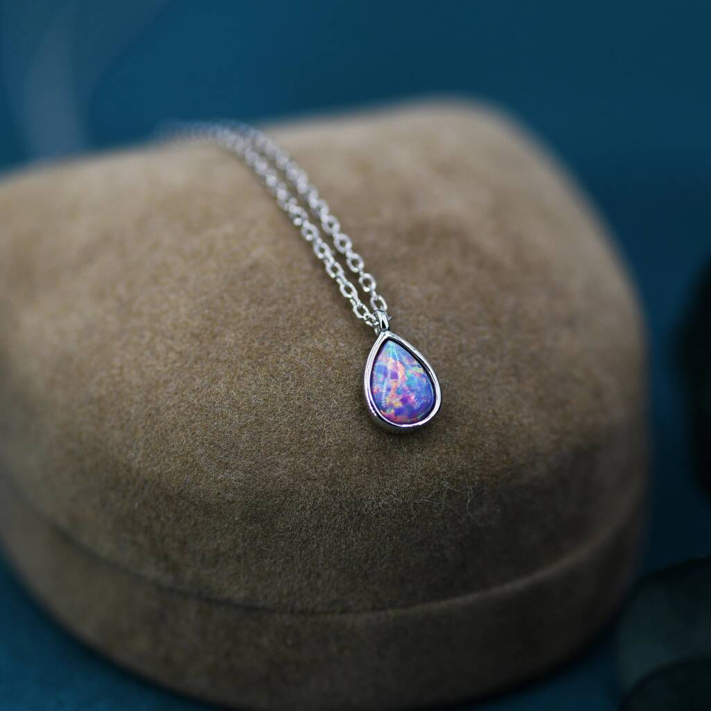 • Droplet Purple Opal Pendant Necklace In Sterling Silver, thumbnail 7 of 10