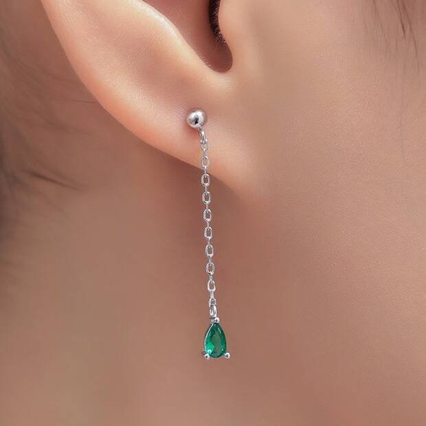 Emerald Green Droplet Dangle Stud Earrings In Sterling Silver