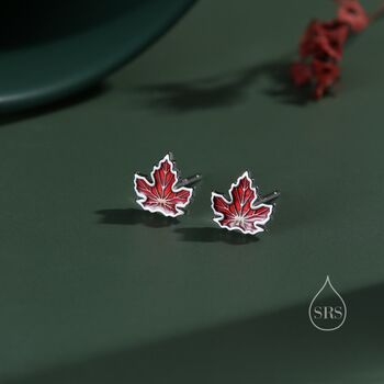 Showcase autumnal elegance with Enamel Maple Leaf Stud Earrings in Sterling Silver, beautifully detailed with vibrant enamel for a striking, seasonal accessory.