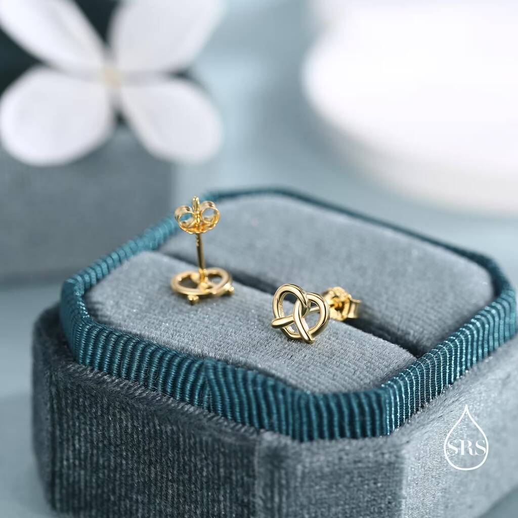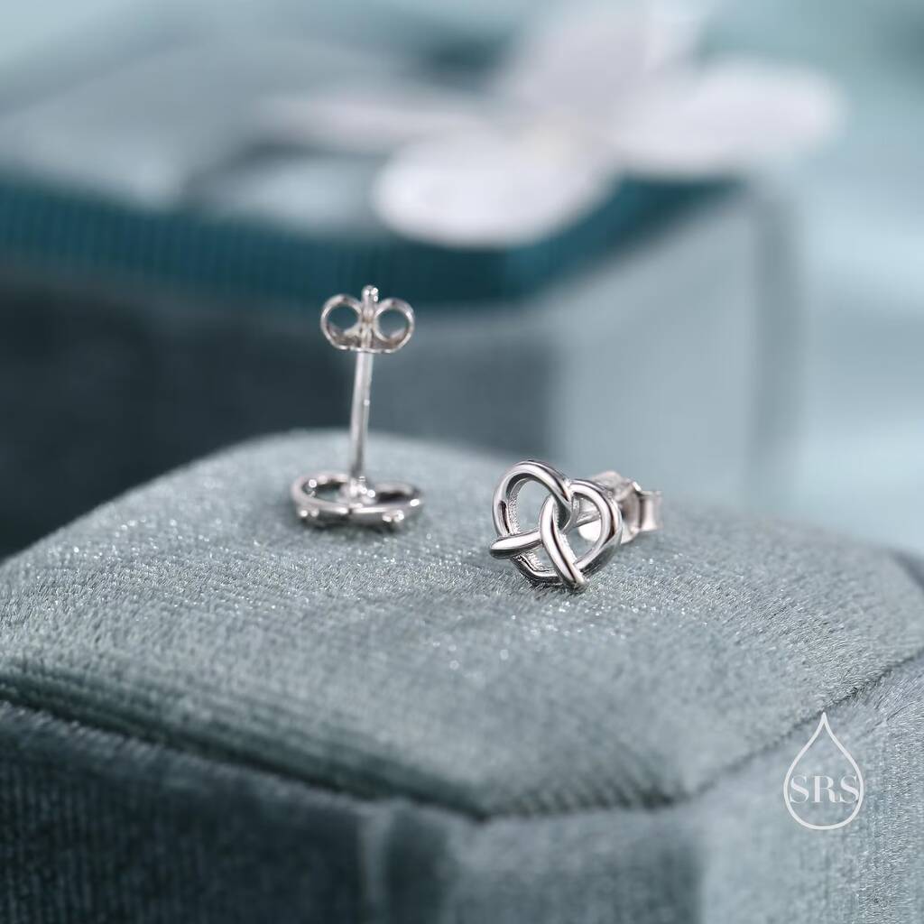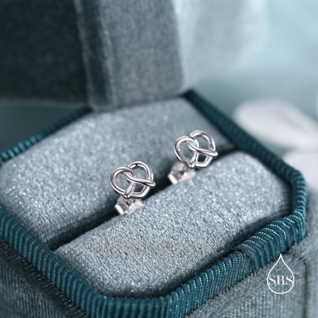 Showcase the intricate beauty of love and connection with our Extra Tiny Pretzel Heart Knot Earrings in Sterling-Silver, a delicate symbol of intertwined affection.
