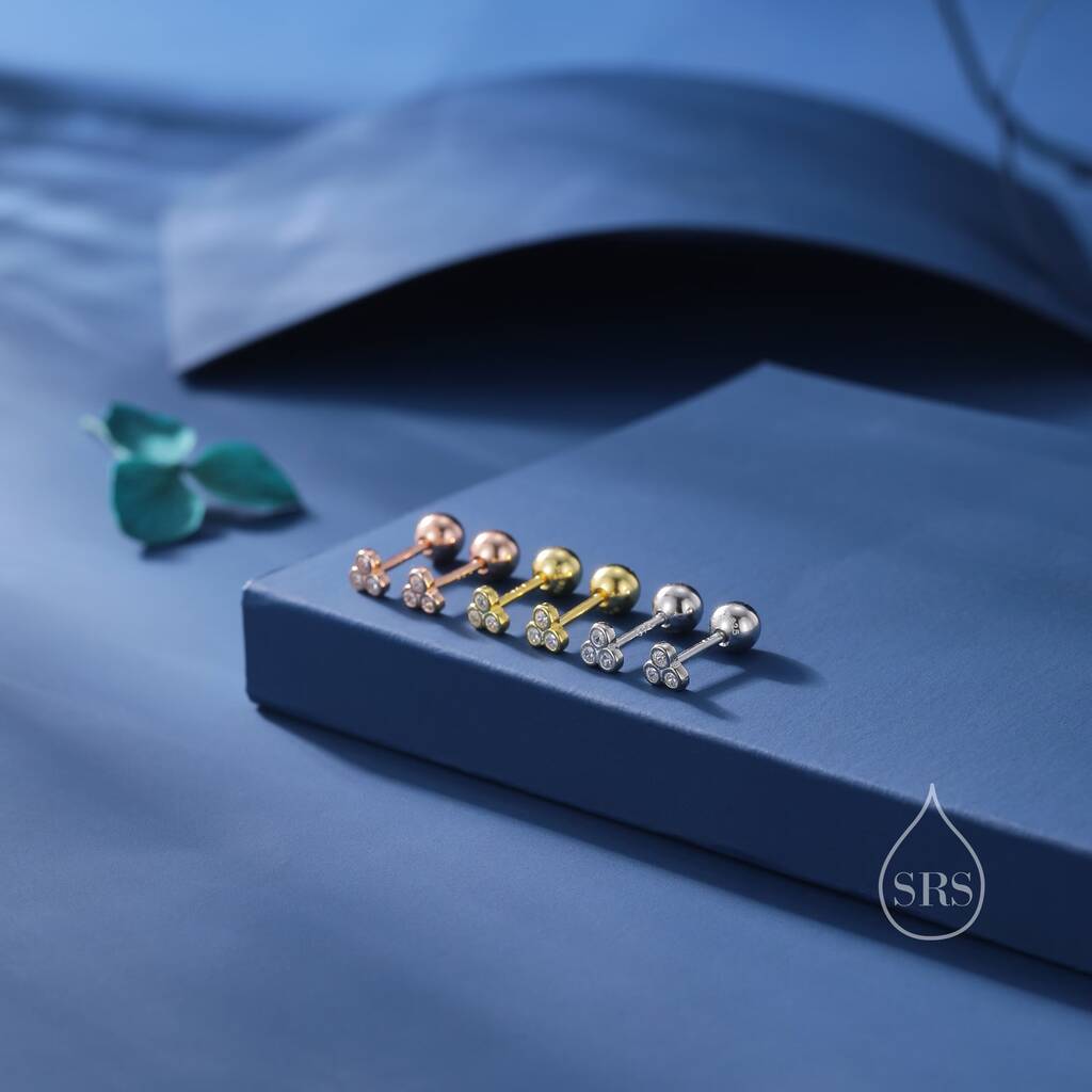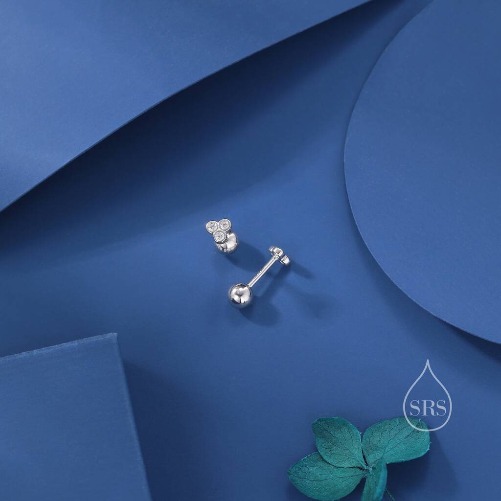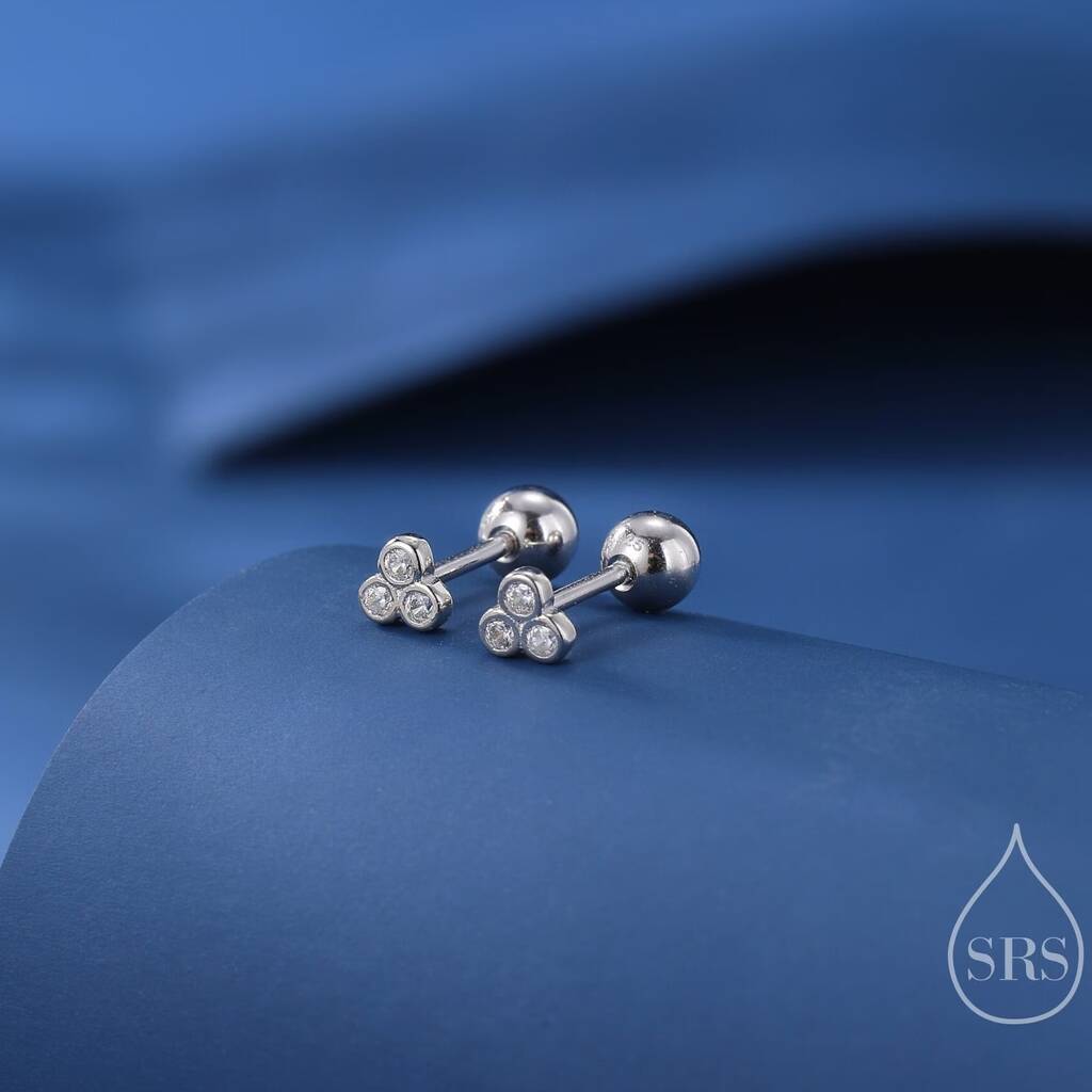 Delicate sterling silver three tiny CZ stones with secure screw backs, adding subtle sparkle and a refined, stylish touch to everyday wear or gifting.