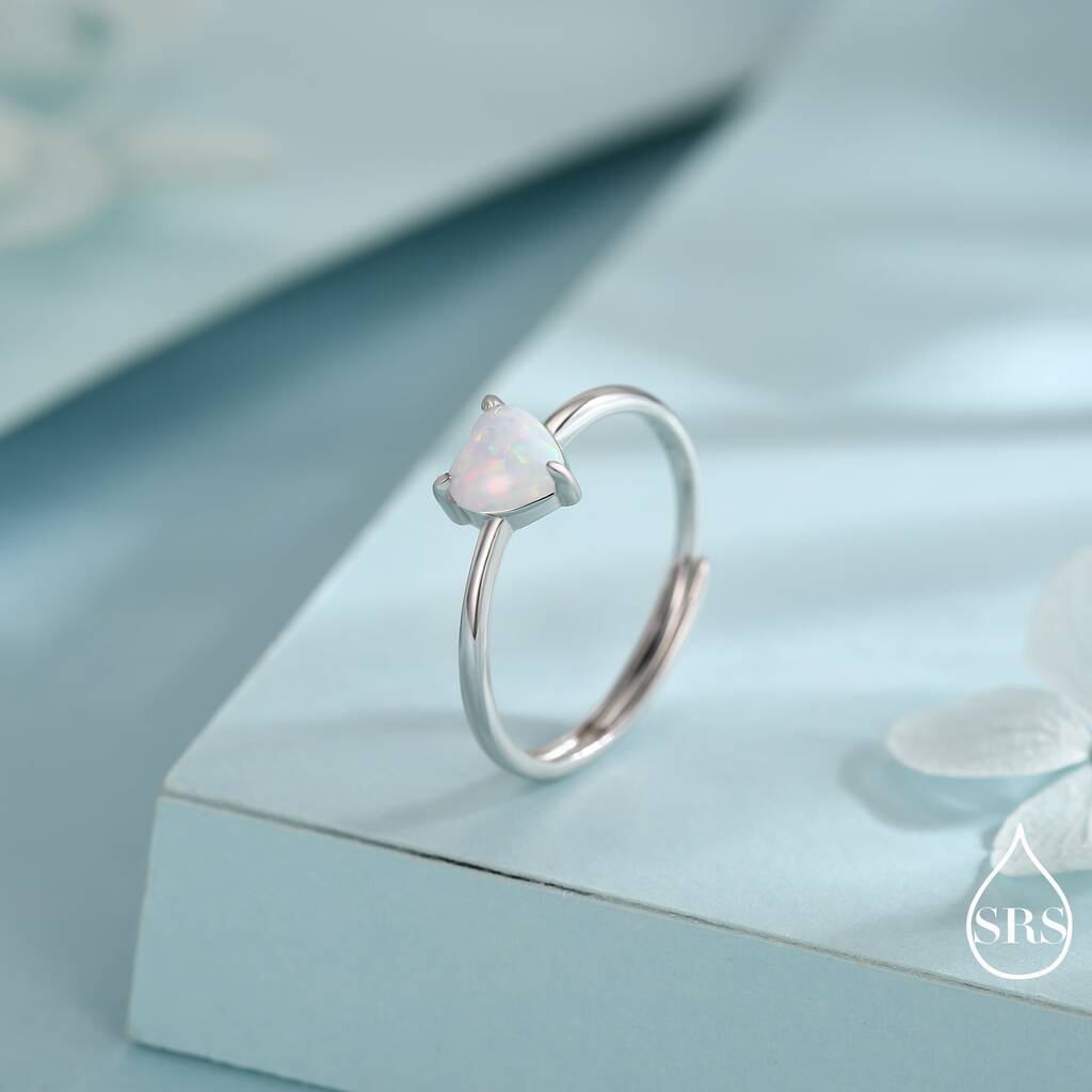 Sterling silver ring featuring a vibrant fire opal heart, adding bold color, radiant sparkle, and a romantic, stylish touch to everyday wear or meaningful gifting.