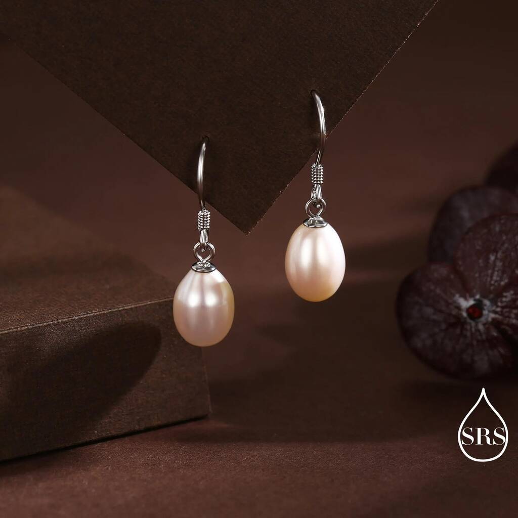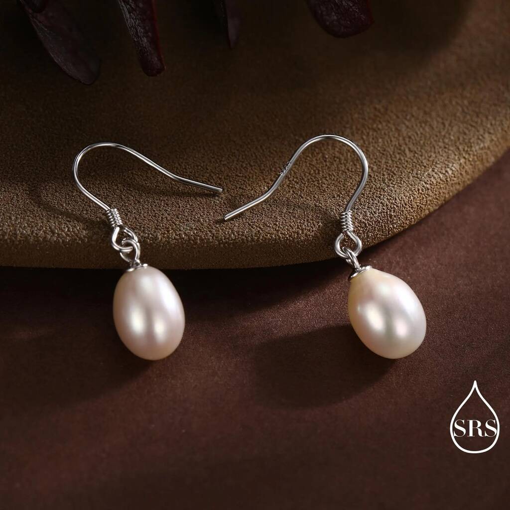Elegant freshwater pearl drop hook earrings crafted in sterling silver. Embrace timeless sophistication with natural beauty. Perfect for adding a classic accent to any ensemble.
