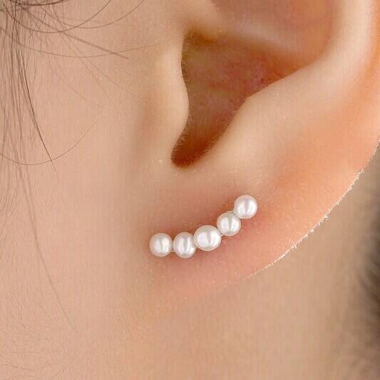 Genuine Freshwater Pearl Curved Bar Earrings In Sterling Silver