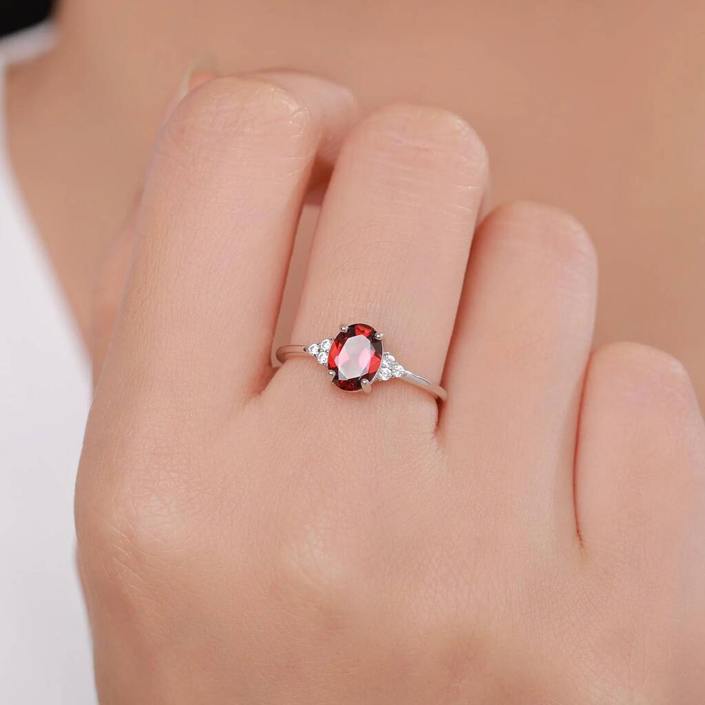 Elegant genuine garnet oval ring in sterling silver. Radiate with captivating warmth. Ideal for adding a touch of classic charm or gifting timeless beauty.