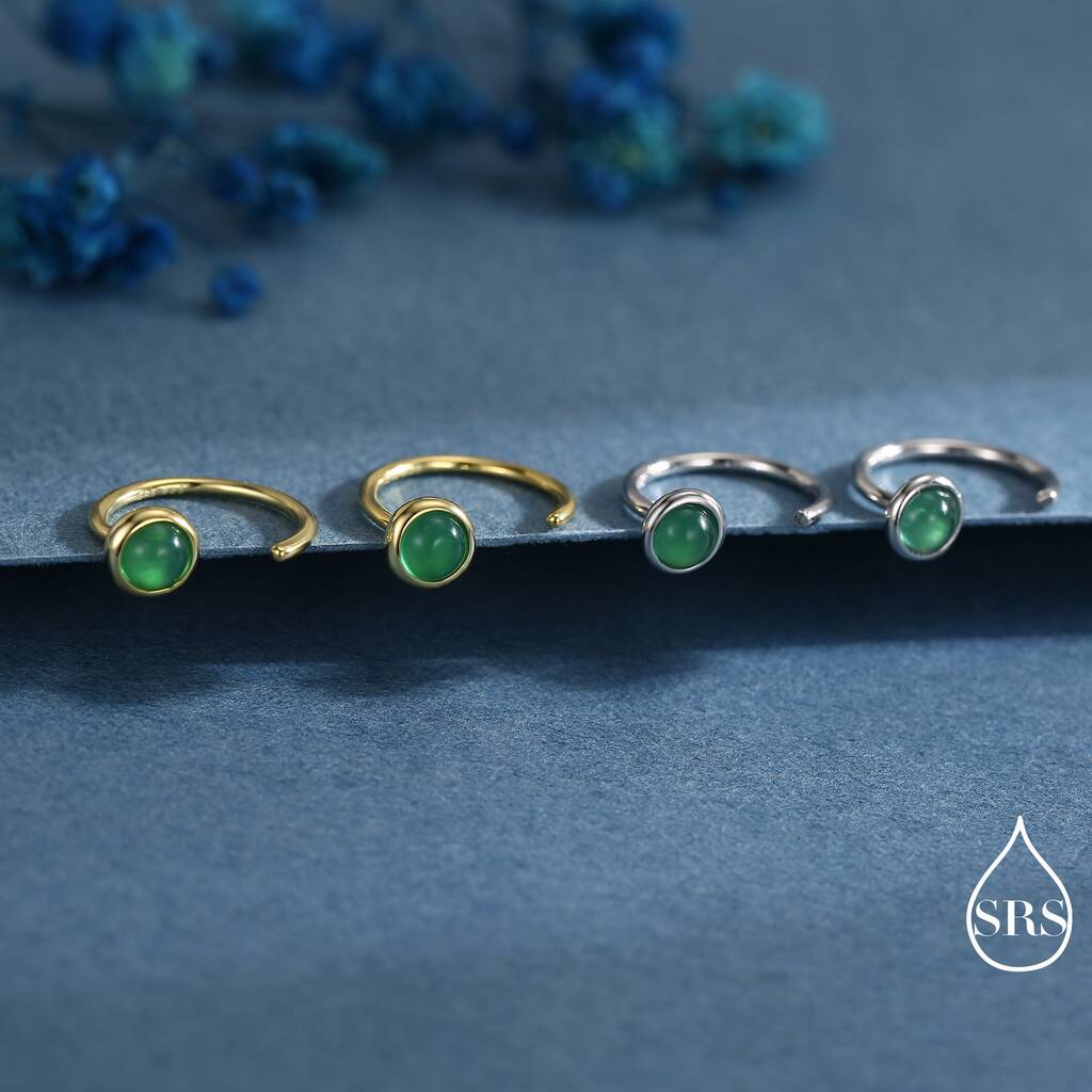 Sterling Silver Genuine Green Onyx Huggie Hoop Earrings