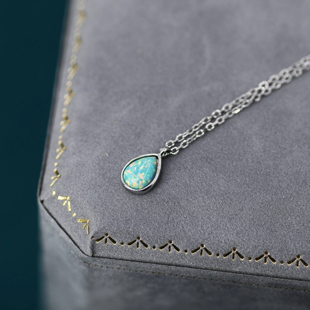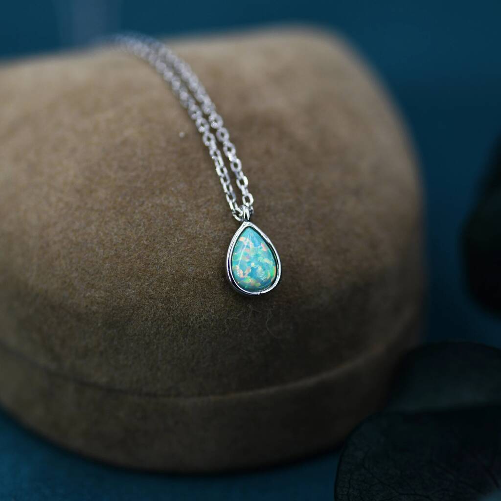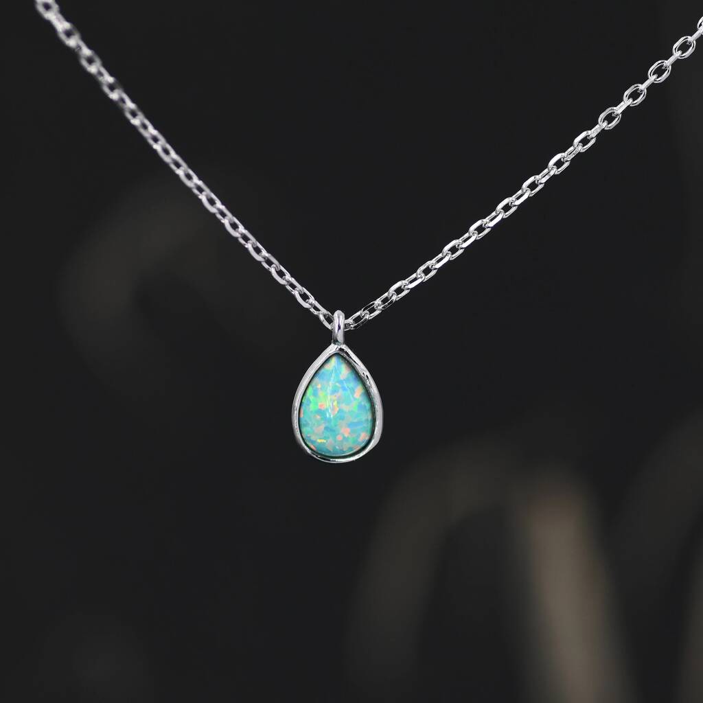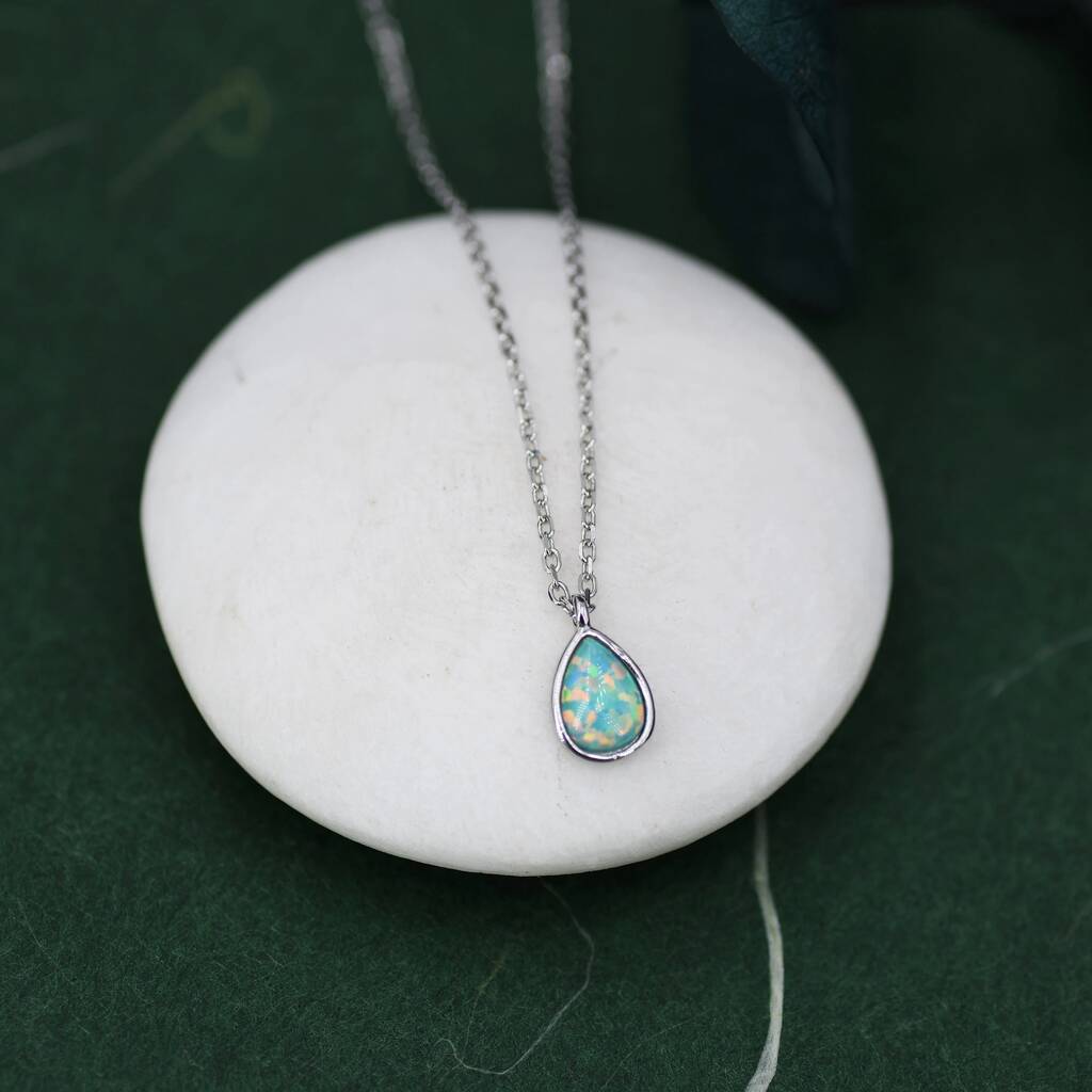 Sterling Silver Green Opal Droplet Pendant Necklace, radiant green opal in a delicate droplet design, adding timeless elegance and a touch of iridescent charm.