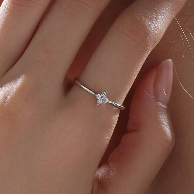 Hydrangea Cz Flower Minimalist Ring In Sterling Silver