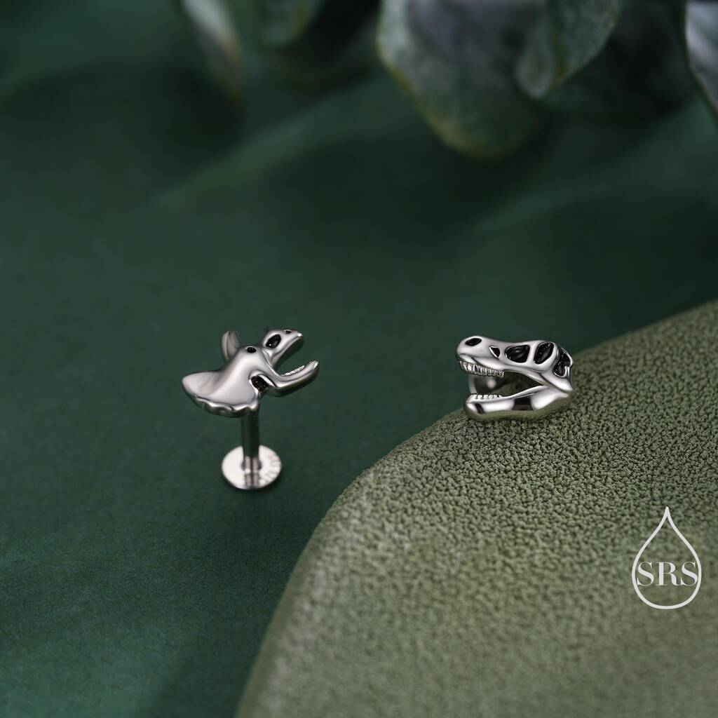 Show unique, prehistoric charm with Internally Threaded Mismatched Dinosaur Fossil Flat Back Earrings in sterling silver—detailed, secure, and perfect for a bold, playful statement.