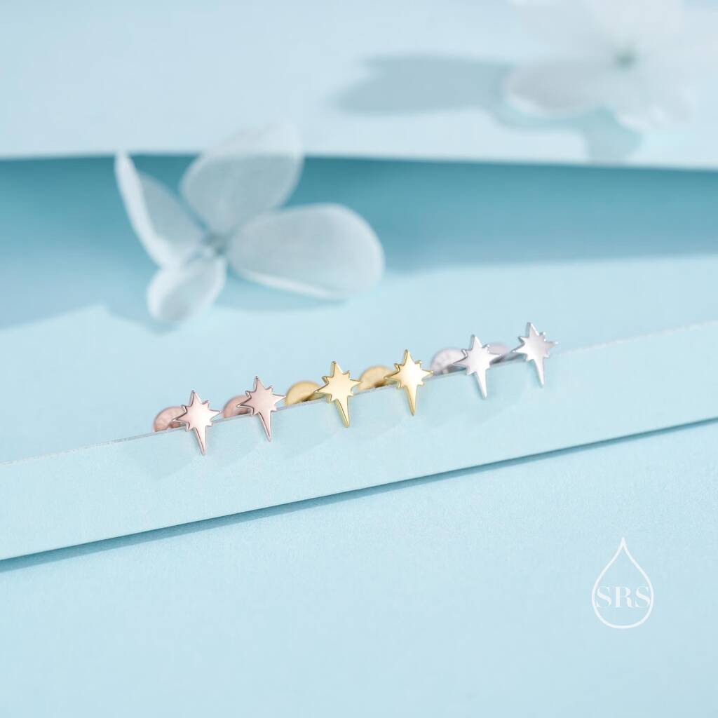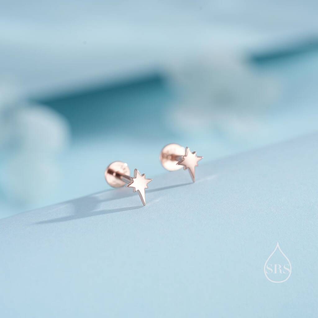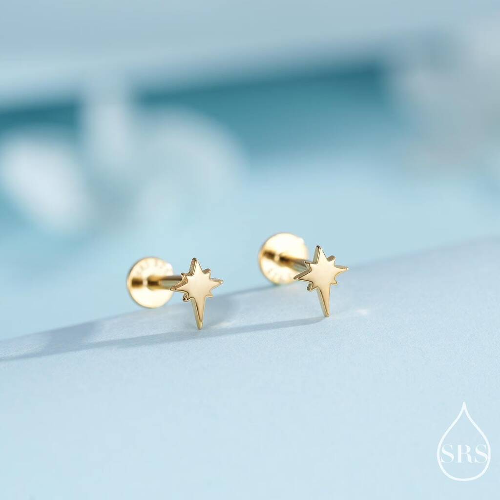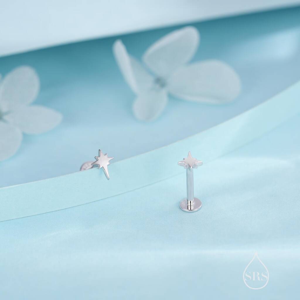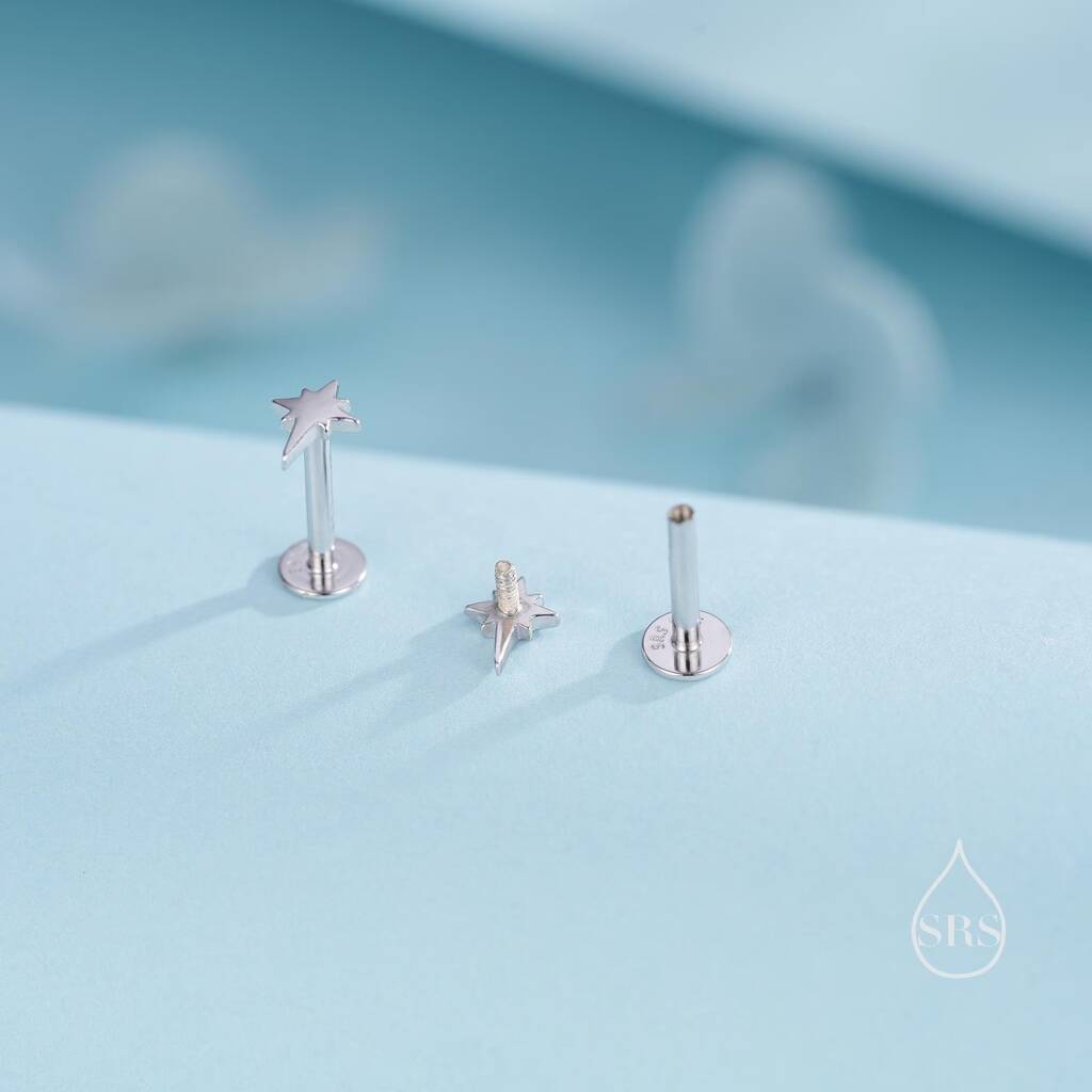 Delicate sterling silver studs featuring starburst with internally threaded flat backs, adding radiant sparkle and a celestial-inspired, stylish touch to everyday wear or gifting.