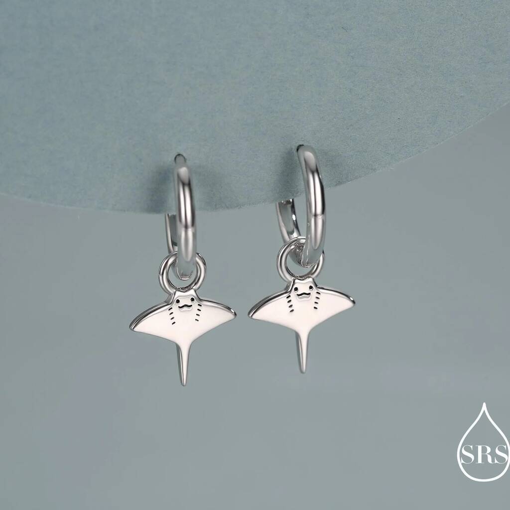 Kawaii Manta Ray Huggie Hoop Earrings In Sterling Silver