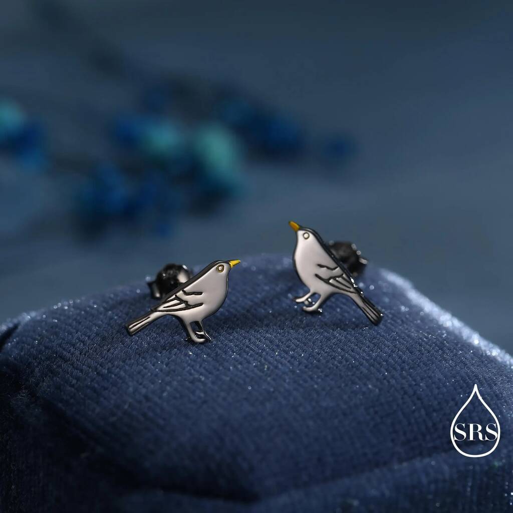 Little Black Bird Stud Earrings in Sterling Silver with Yellow Beak feature charming, nature-inspired design, adding playful detail and subtle elegance perfect for everyday wear.