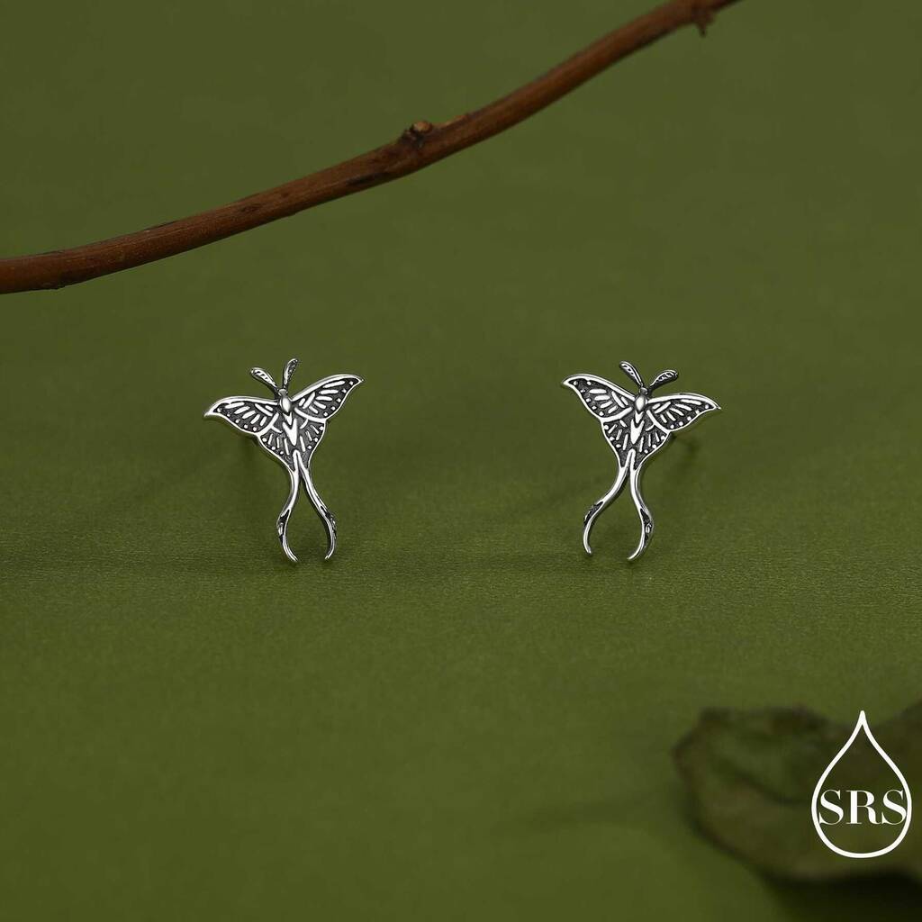 Embrace nocturnal elegance with Lunar Moth Sterling Silver Stud Earrings with an oxidised finish—mysterious, finely detailed, and beautifully crafted for a distinctive, nature-inspired look.