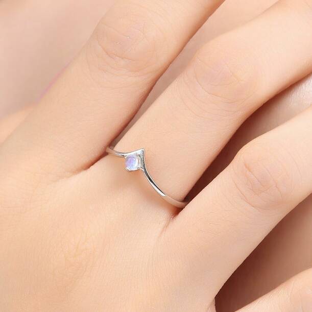 Minimalist Moonstone Chevron Ring In Sterling Silver