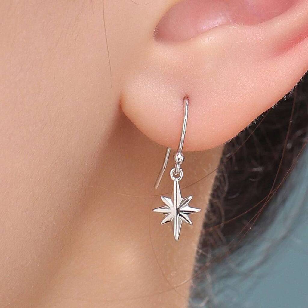 Minimalist Starburst Dangle Drop Hook Earrings In Sterling Silver