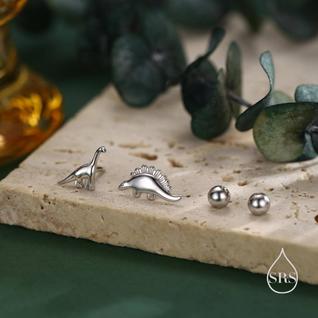 Add a playful prehistoric twist with Mismatched Dinosaur Screw Back Earrings in sterling silver—fun, finely detailed, and securely crafted for a quirky everyday statement.