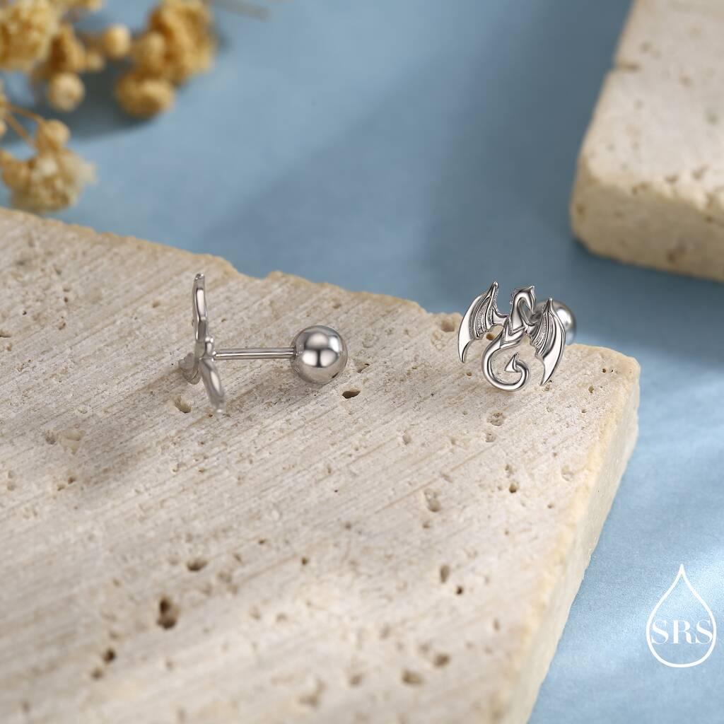 Sterling silver studs featuring mismatched dragon and phoenix designs with secure screw-backs, adding mythical-symbolism, bold elegance, and a stylish touch to everyday wear or gifting.