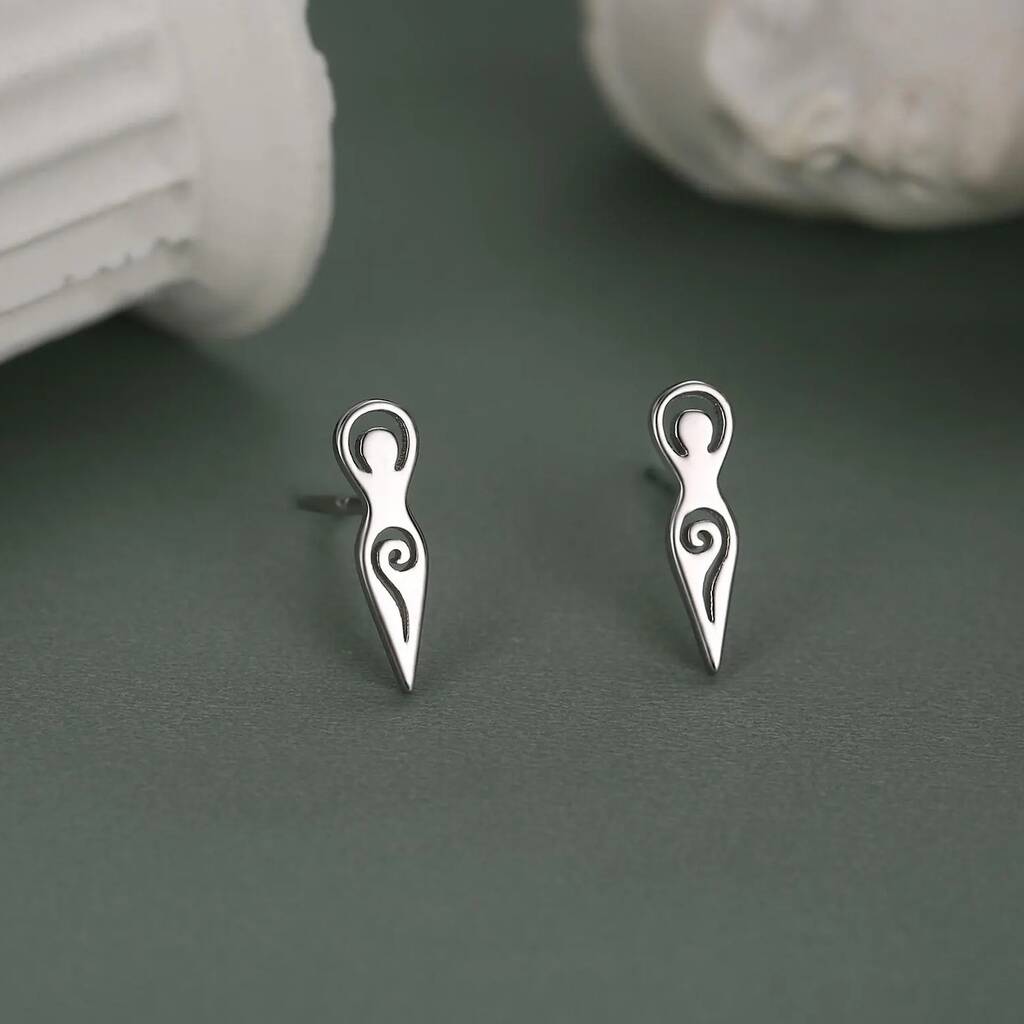 Mother Earth / Neolithic Goddess / Fertility Goddess Stud Earrings In Sterling Silver