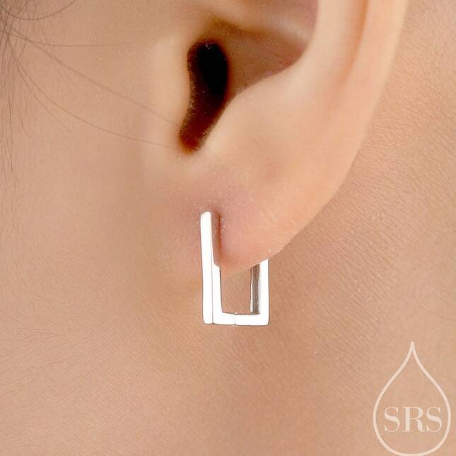 Rectangle Hoop Earrings In Sterling Silver