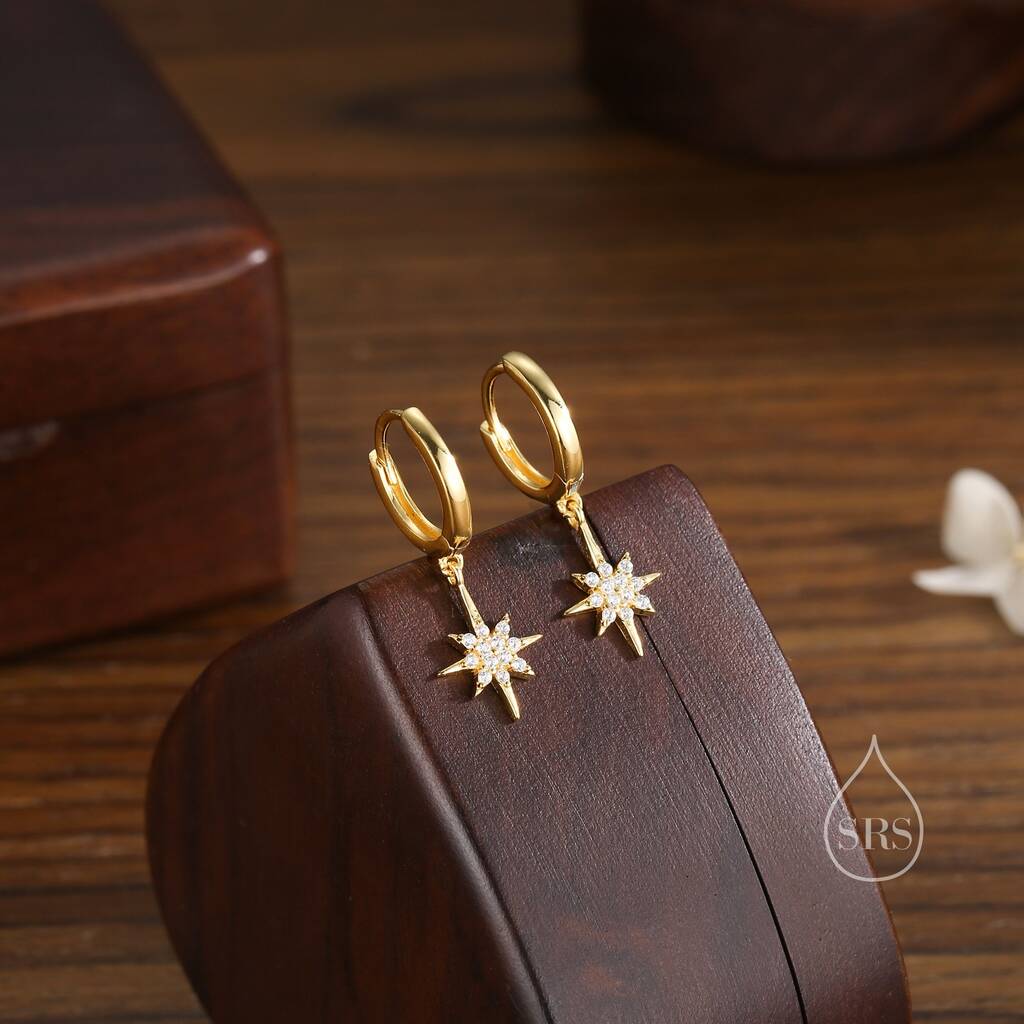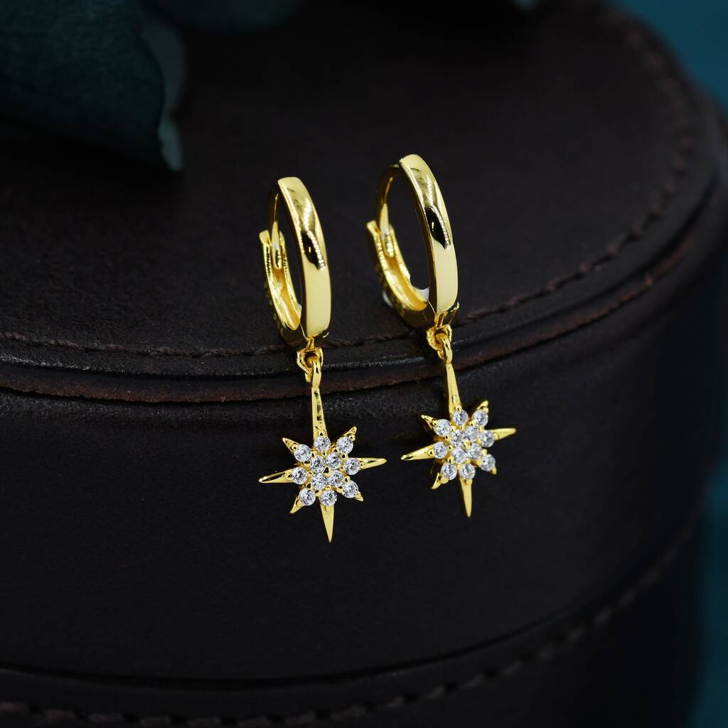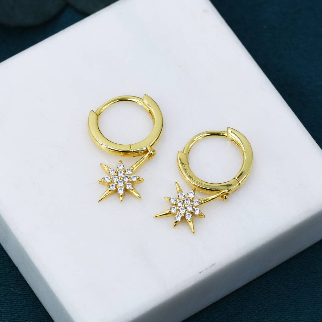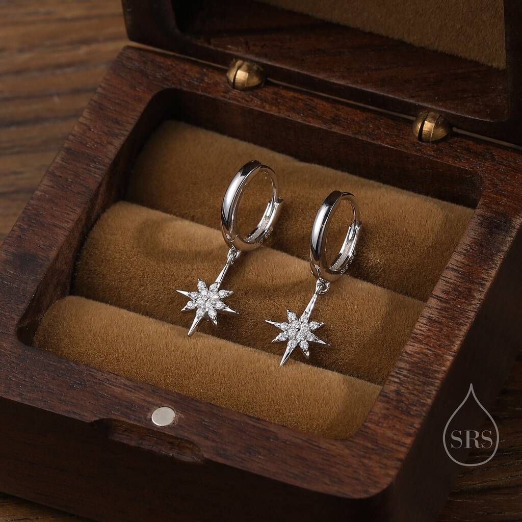 Sterling Silver Starburst Huggie Hoop Earrings