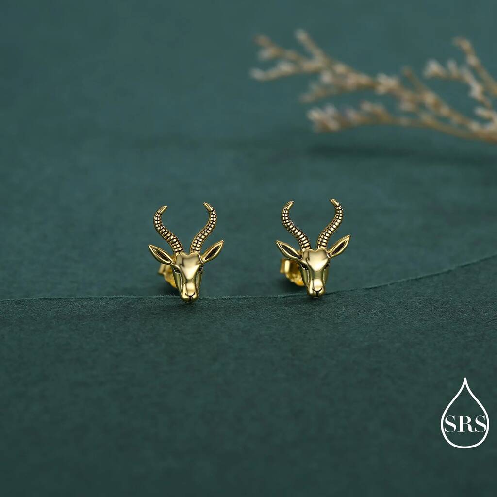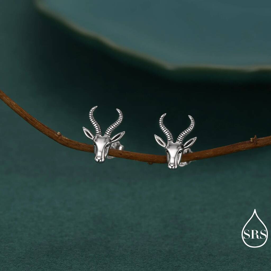 Sterling Silver Antelope / Deer Head Stud Earrings