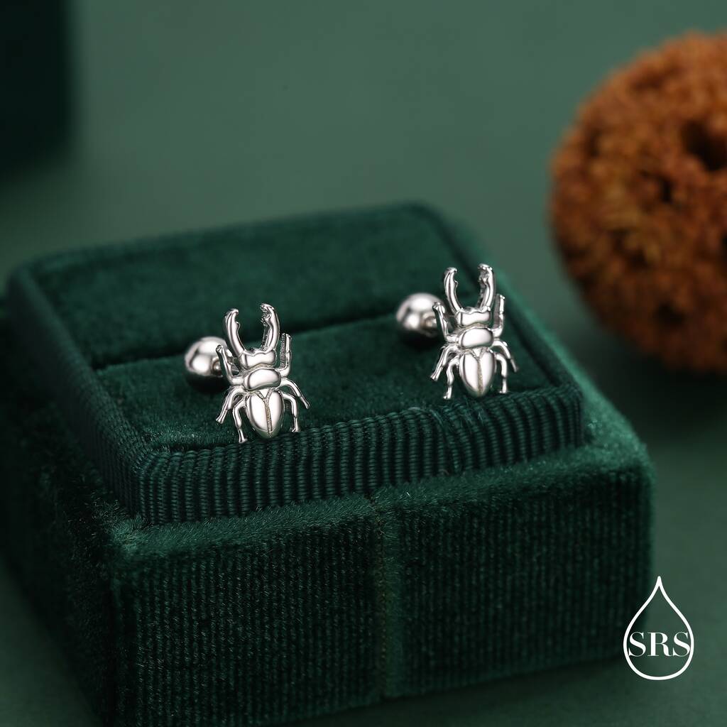 Celebrate nature’s intricate beauty with Sterling Silver Beetle 18G Screw-Back Stud Earring with ball-back—finely detailed and perfect for adding a bold yet elegant-touch to your-look.