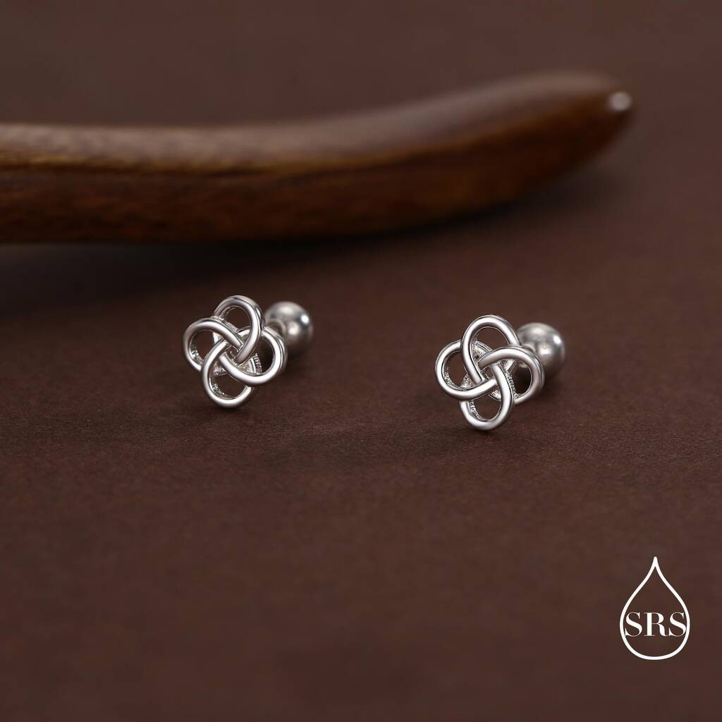 Embrace timeless heritage with Sterling Silver Celtic Knot 18G Screw Back Stud Earrings—intricately crafted, secure, and perfect for a classic, everyday touch of Celtic elegance.