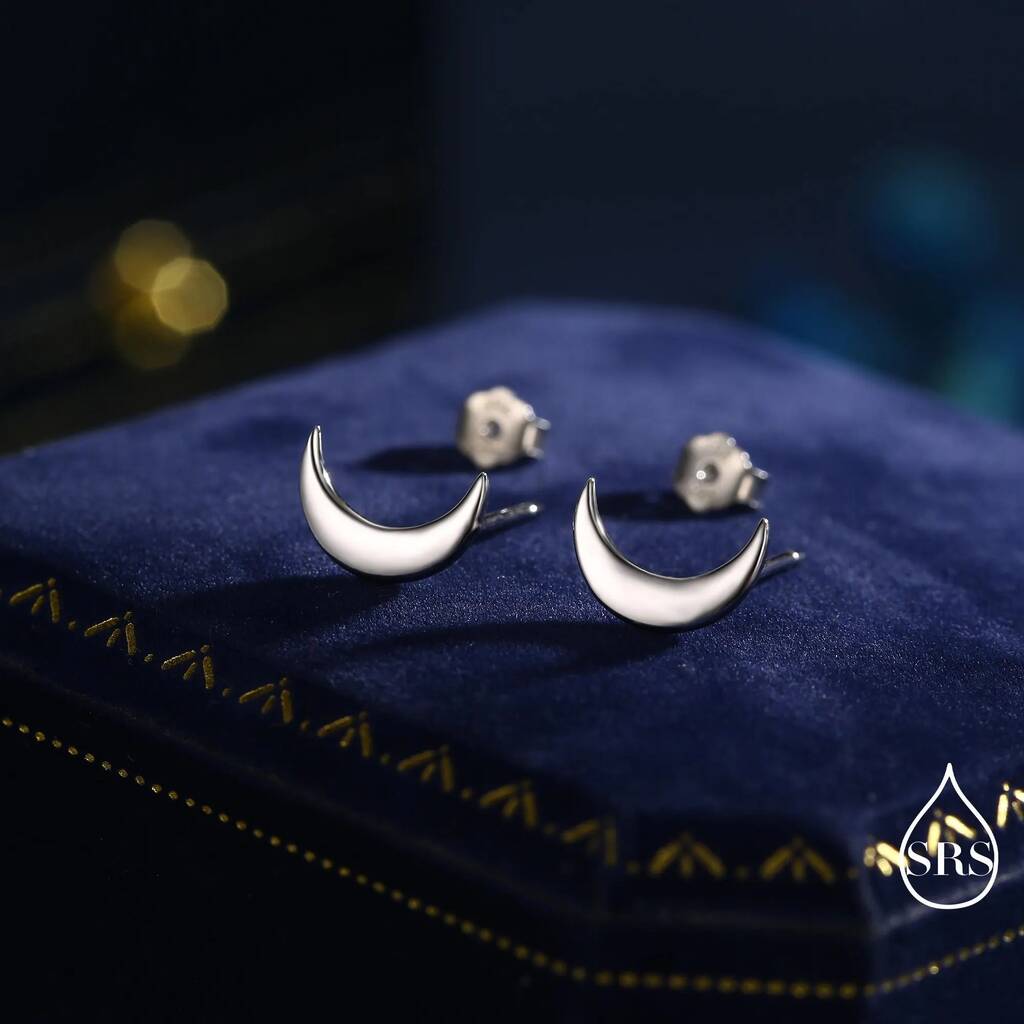 Chic sterling-silver crescent moon stud earrings. Embrace celestial-elegance with these minimalist yet stylish accessories, perfect for adding a touch of celestial charm to your look.