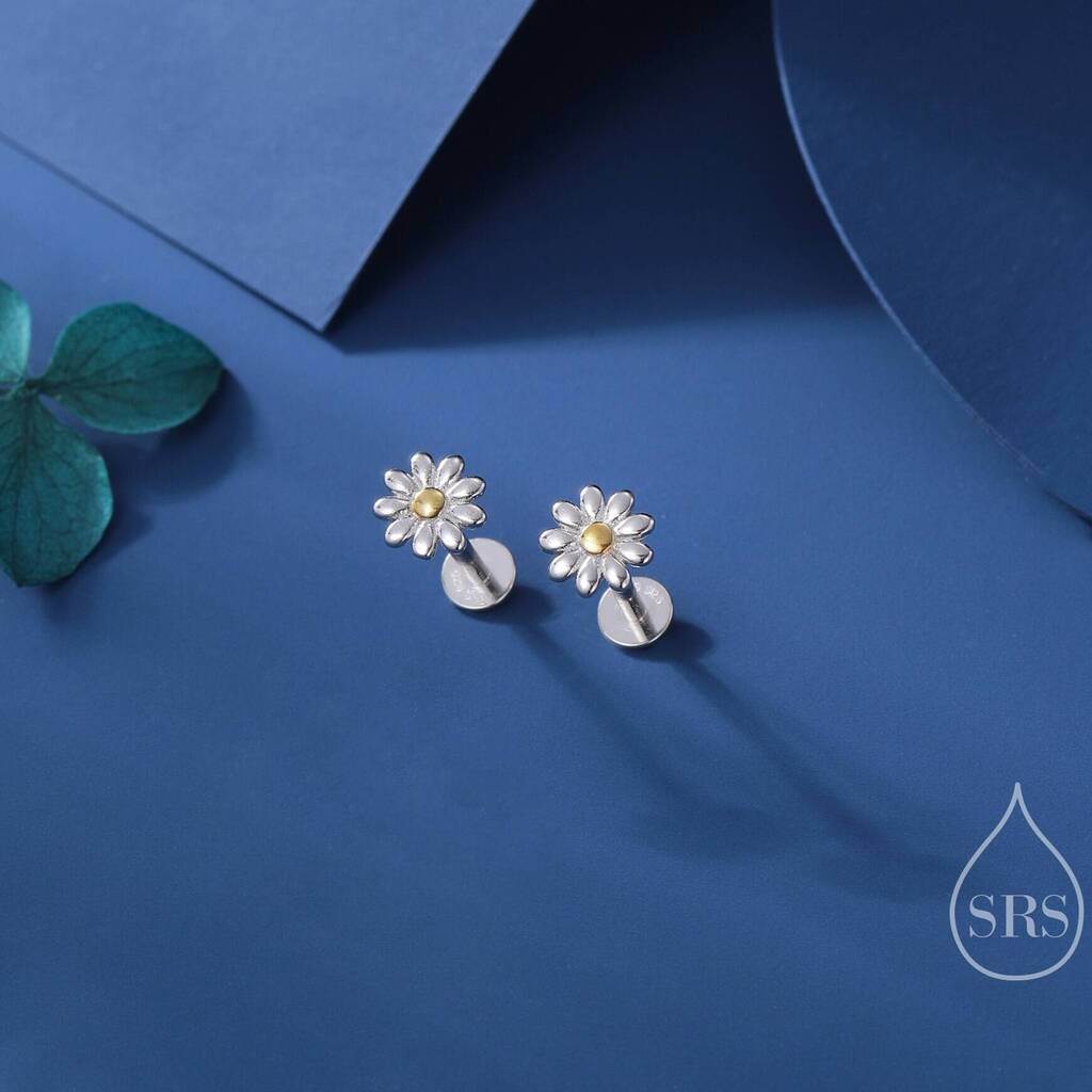 Bloom with subtle elegance in Sterling Silver Daisy Internally Threaded Flat Back Earrings—delicate, secure, and beautifully crafted for a fresh, floral-inspired everyday look.