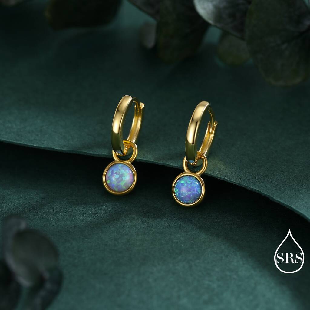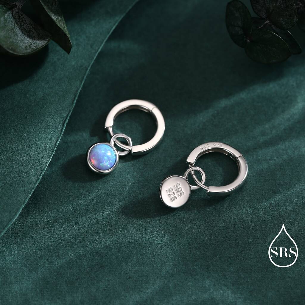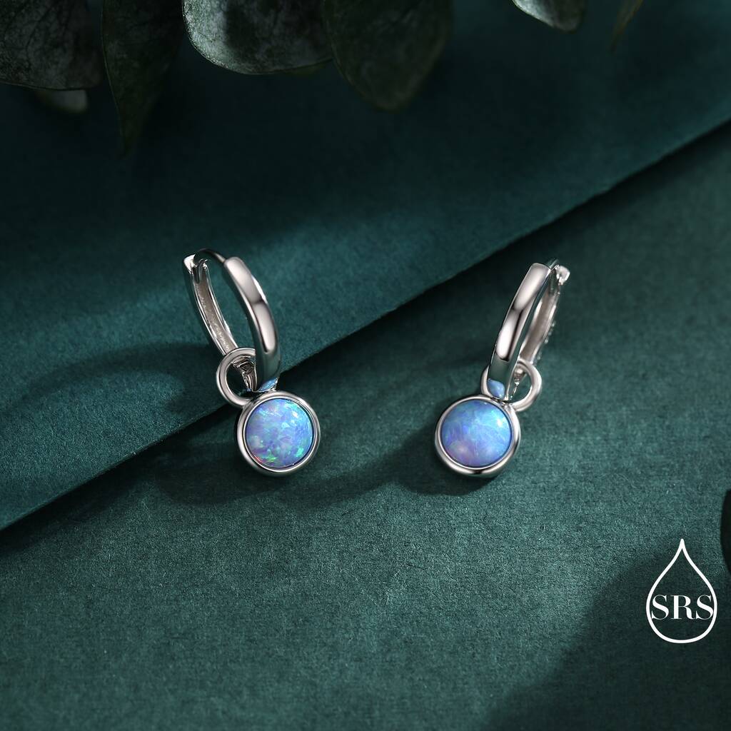 Elevate your style with these exquisite blue opal hoop earrings. A perfect blend-of-elegance and sophistication, these earrings add a touch of glamour to any ensemble.