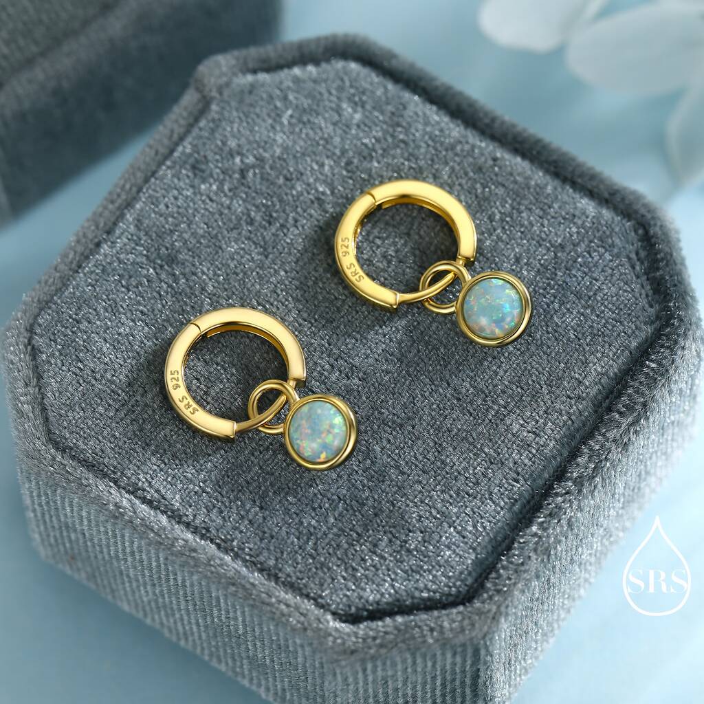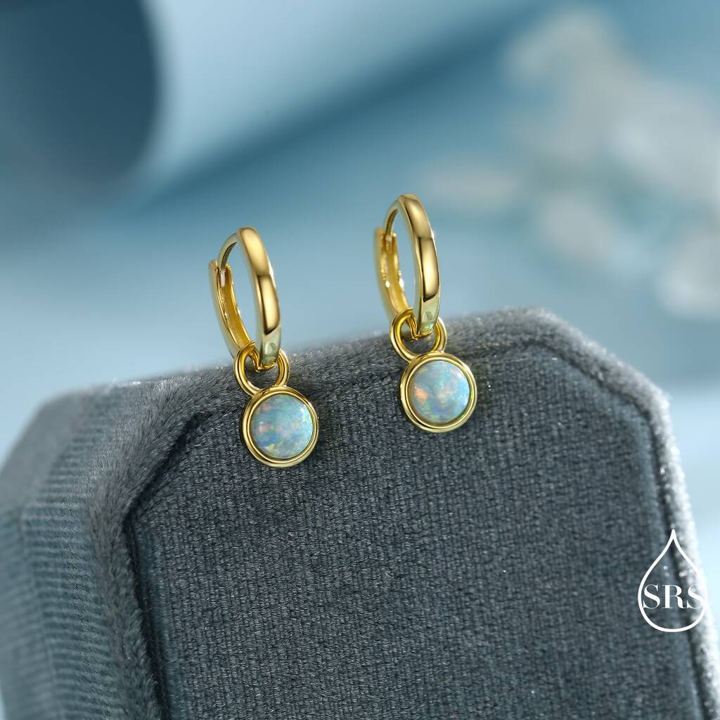 Eye-catching and elegant, these Sterling Silver Dangling Green Opal Hoop Earrings showcase vibrant green opals, adding a playful pop of color to any ensemble.