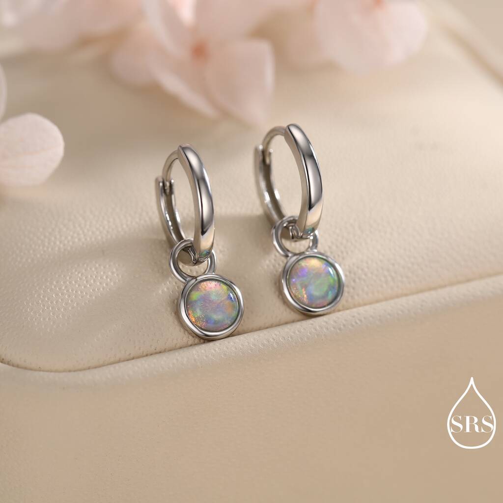 Sterling Silver Dangling Opal Hoop Earrings: Elegant hoops featuring a dangling opal charm, adding a touch of color and sparkle to any outfit.