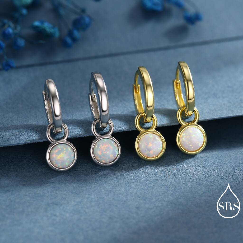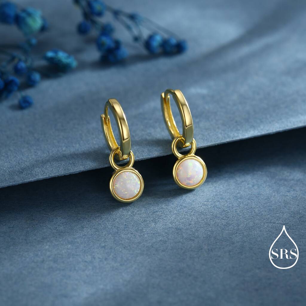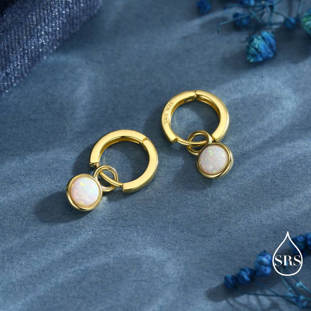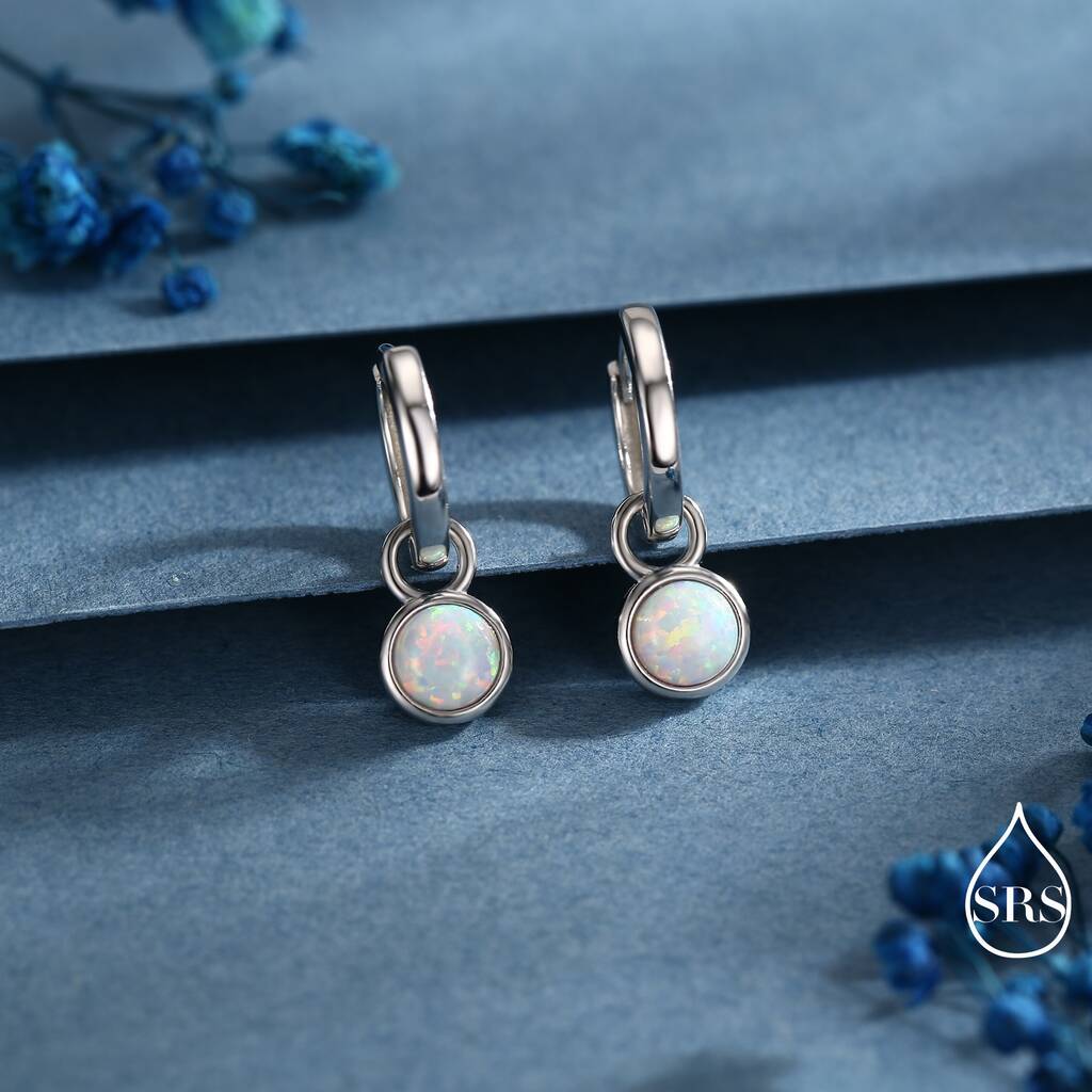 Elevate your style with these exquisite white opal hoop earrings. A perfect blend-of-elegance and sophistication, these earrings add a touch of glamour to any ensemble.