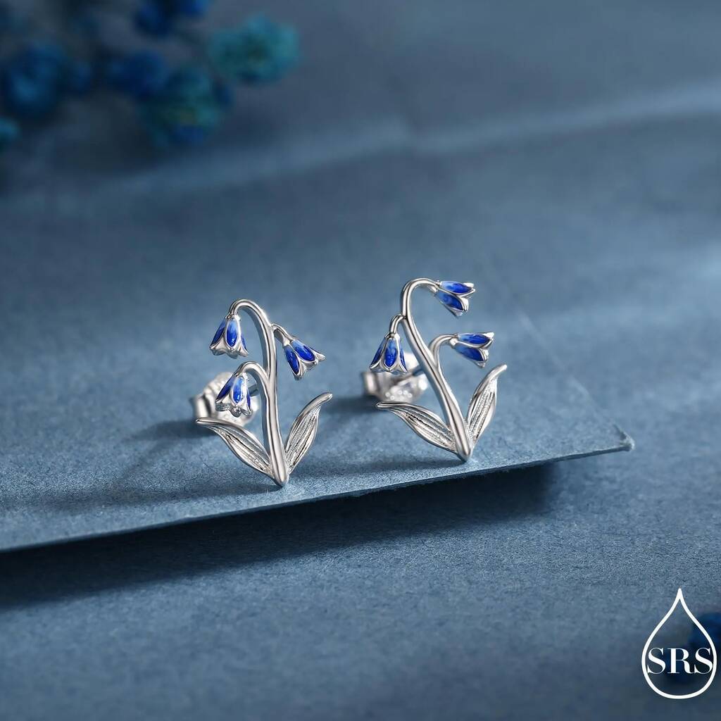 Sterling Silver Delicate Bluebell Flower Stud Earrings with Enamel — charming floral design with soft blue detailing, adding graceful-elegance and spring-inspired beauty to your jewelry-collection.