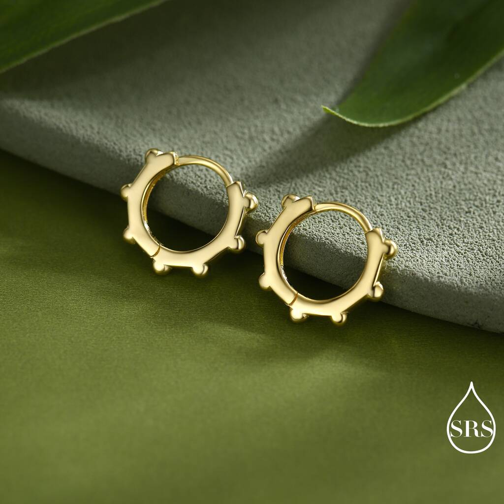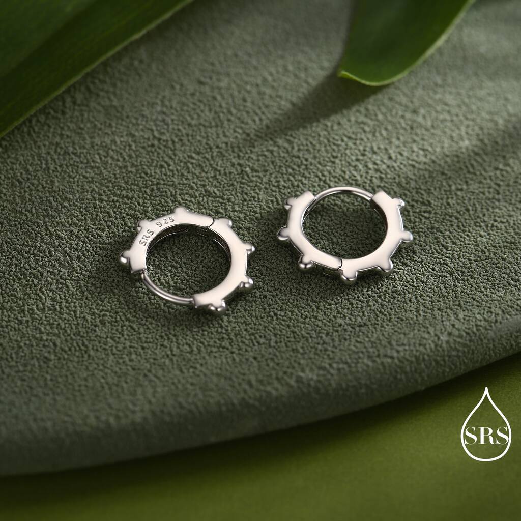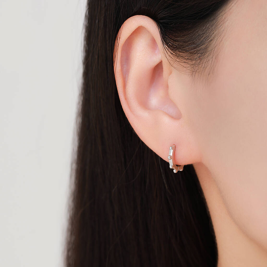 Add subtle texture with the Sterling Silver Dotted Huggie Hoop. Stylish and versatile, these hoops offer a modern twist to any outfit, perfect for everyday-elegance.