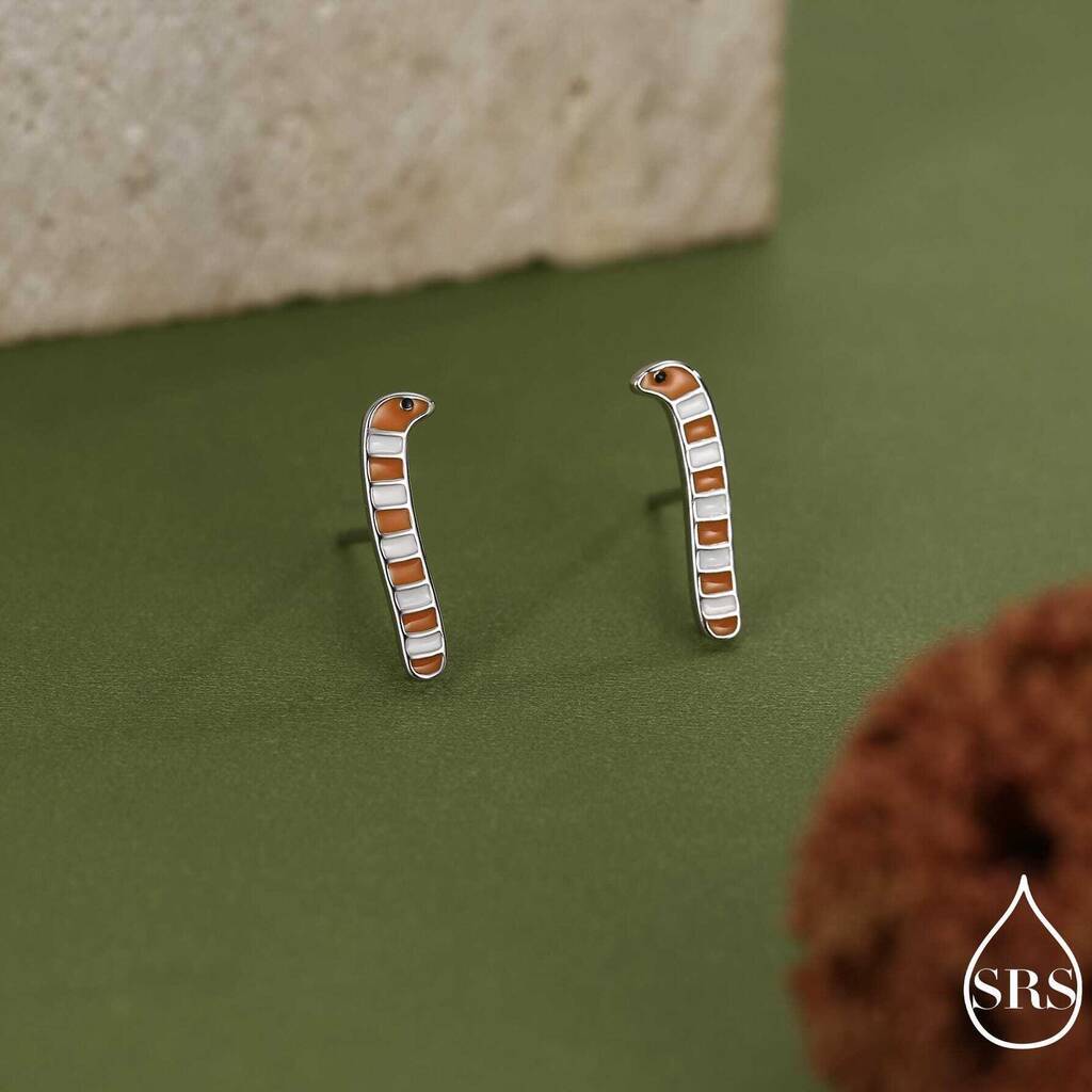 Whimsical sterling silver garden eel stud earrings with vibrant enamel detailing—playful, unique, and perfect for adding a fun, aquatic-inspired touch to any outfit.