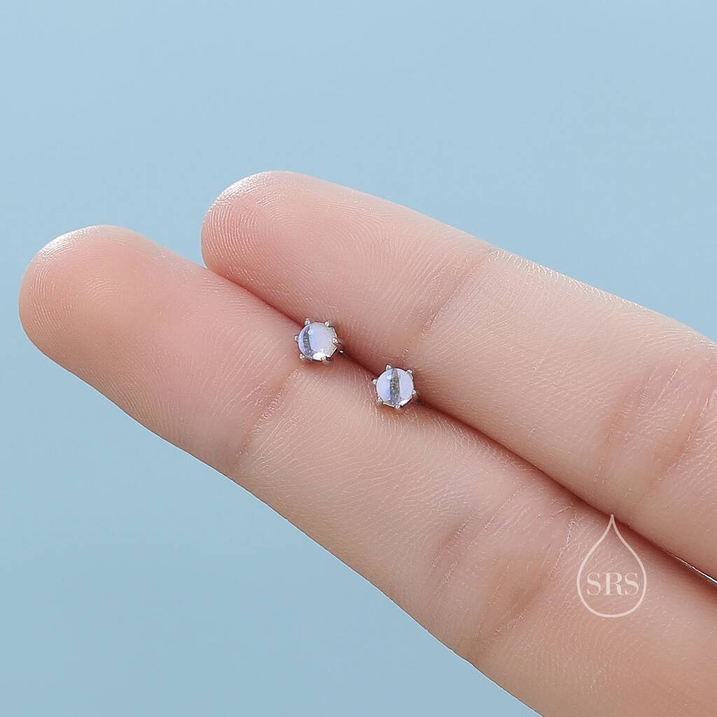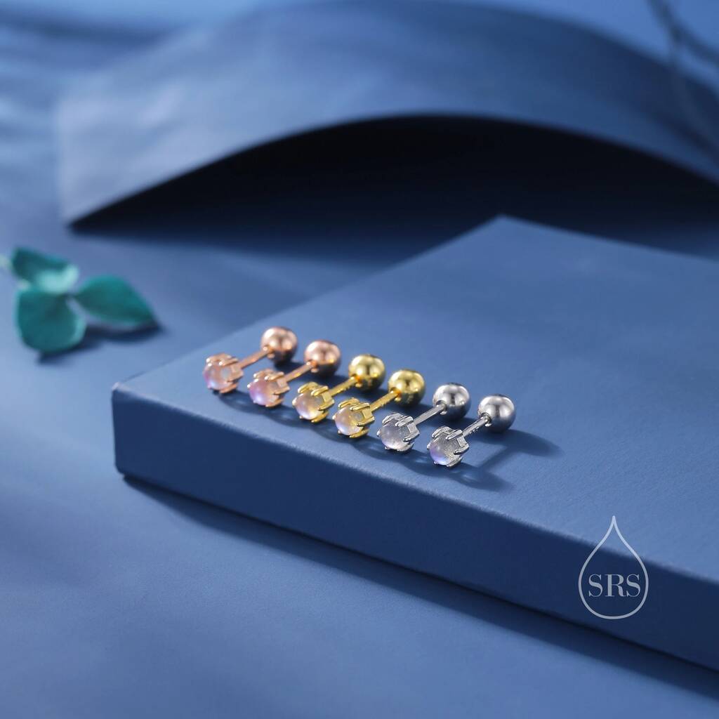 Embrace subtle elegance with our Extra Tiny Moonstone Internally Threaded Earrings. Featuring delicate moonstones, these earrings offer a minimalist, ethereal touch perfect for everyday wear.