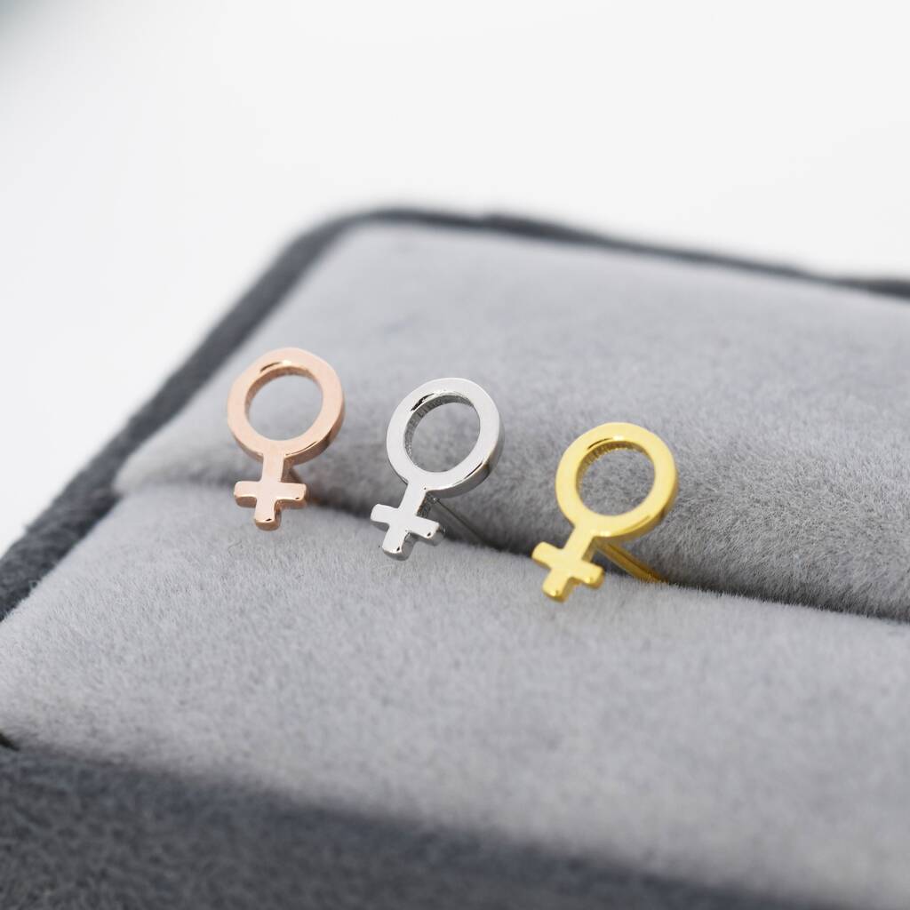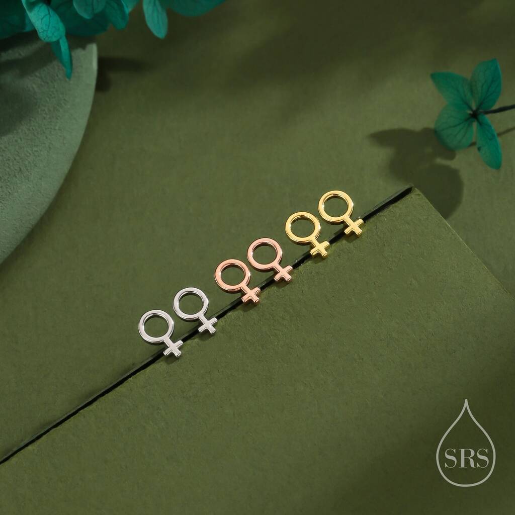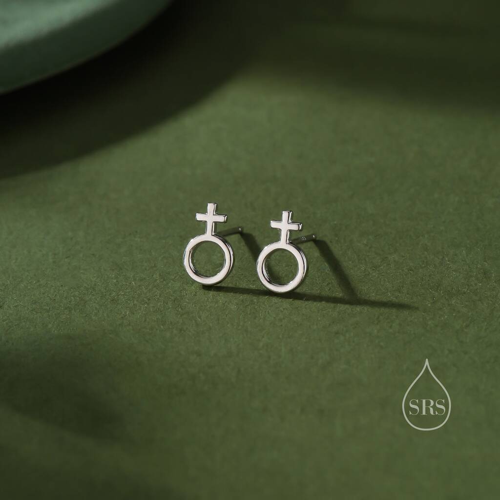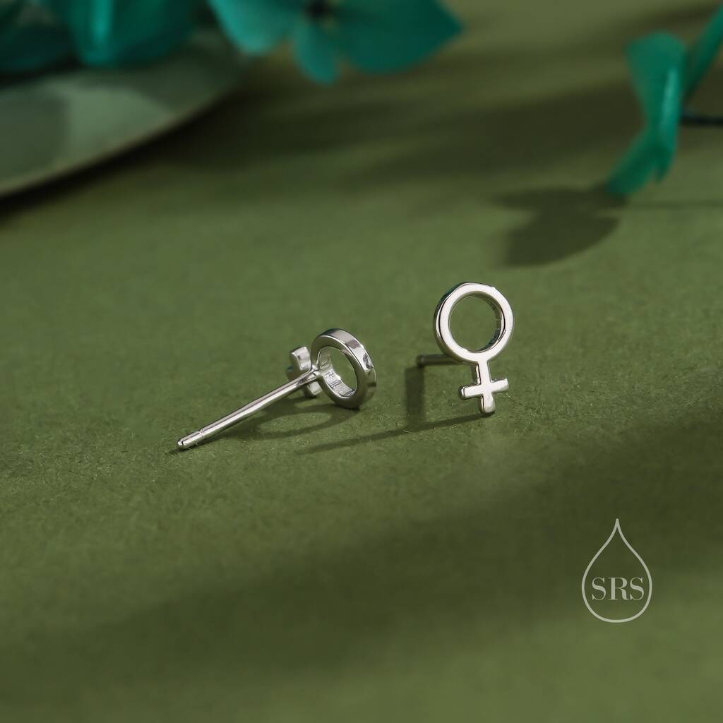 Empowering sterling silver female symbol stud earrings. Celebrate strength and femininity. Ideal for daily wear or gifting a symbol of empowerment and pride.