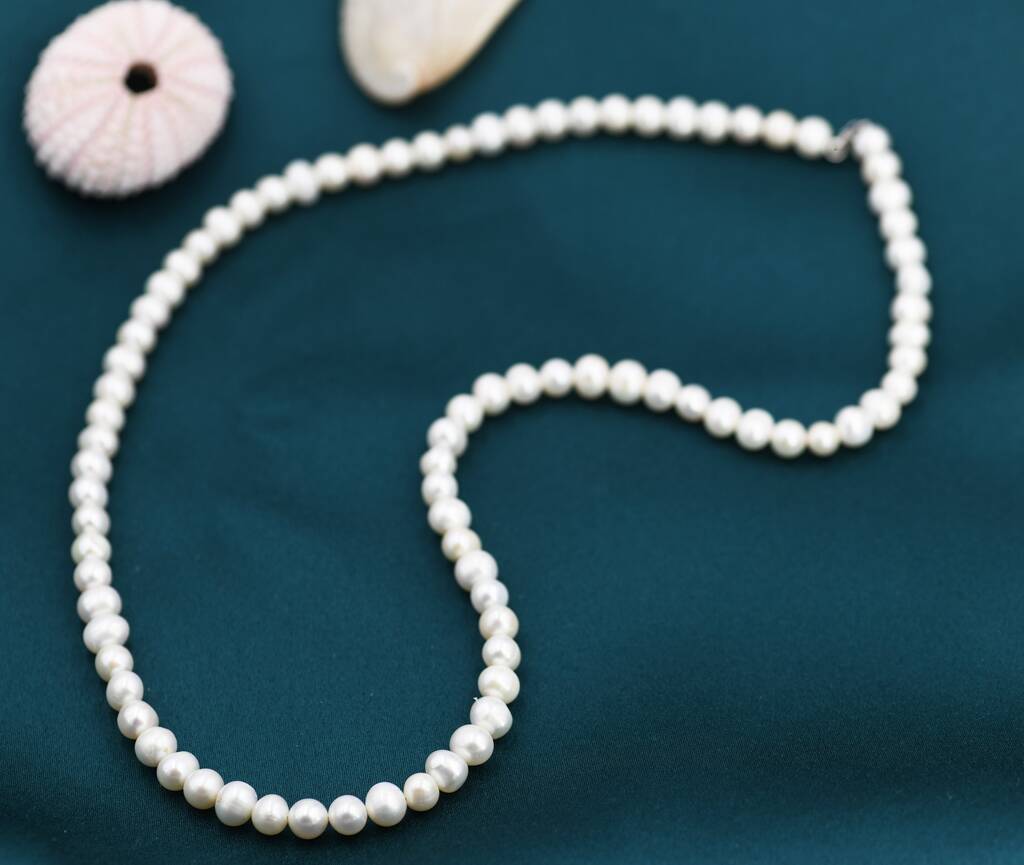 Timeless and elegant, this Sterling Silver Genuine Freshwater Pearl Necklace features lustrous pearls, adding a touch of sophistication to any outfit.