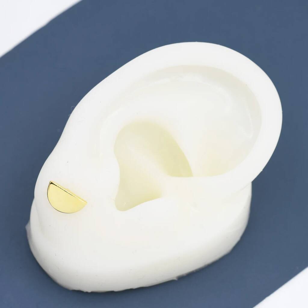 Modern handcrafted sterling silver half circle stud earrings. Embrace contemporary simplicity and versatile-style. Perfect for adding a touch of sophistication or gifting for minimalist fashion.