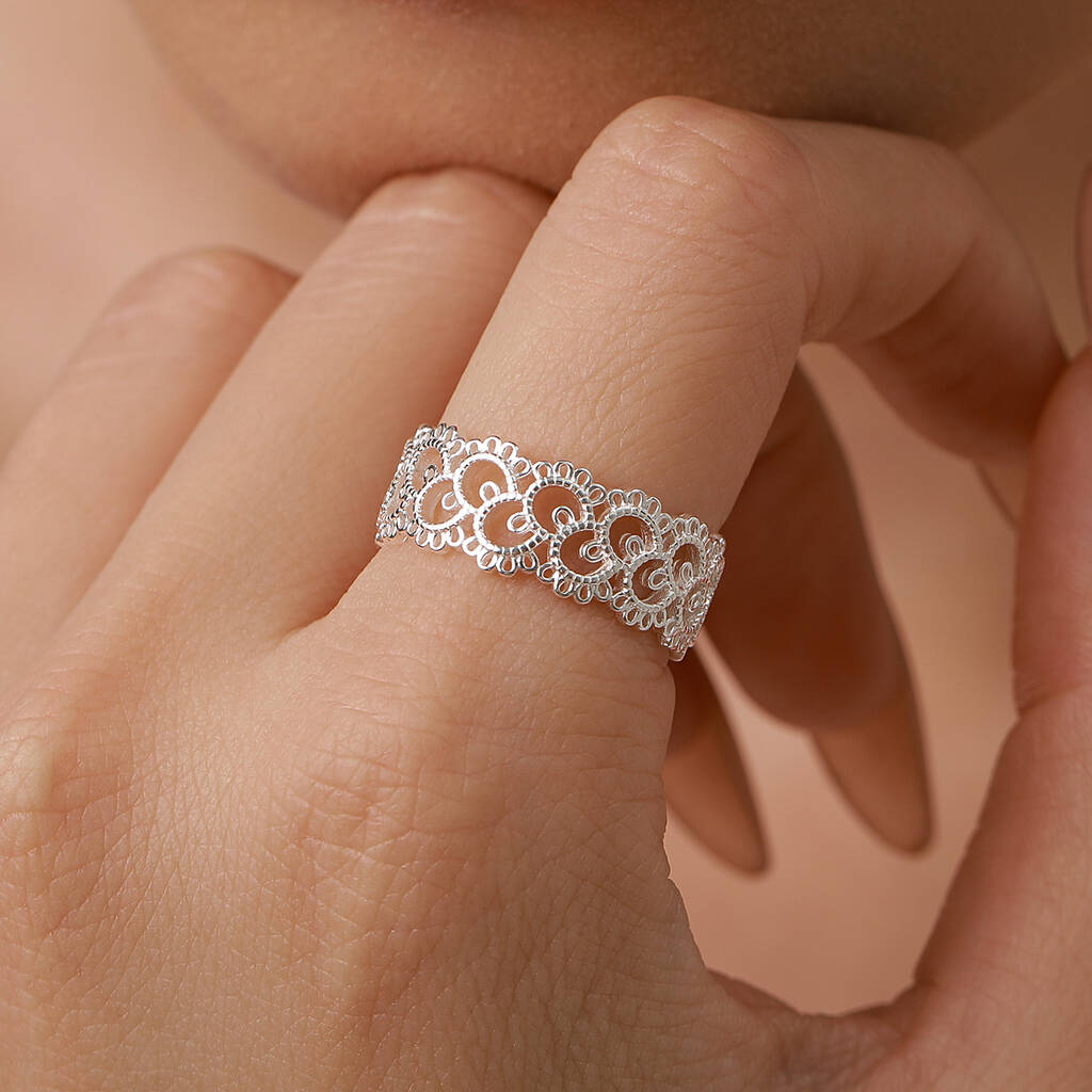 Add intricate elegance with the Sterling Silver Lace Filigree Band Ring—delicately crafted, timeless, and perfect for layering or wearing alone for a sophisticated, detailed look.